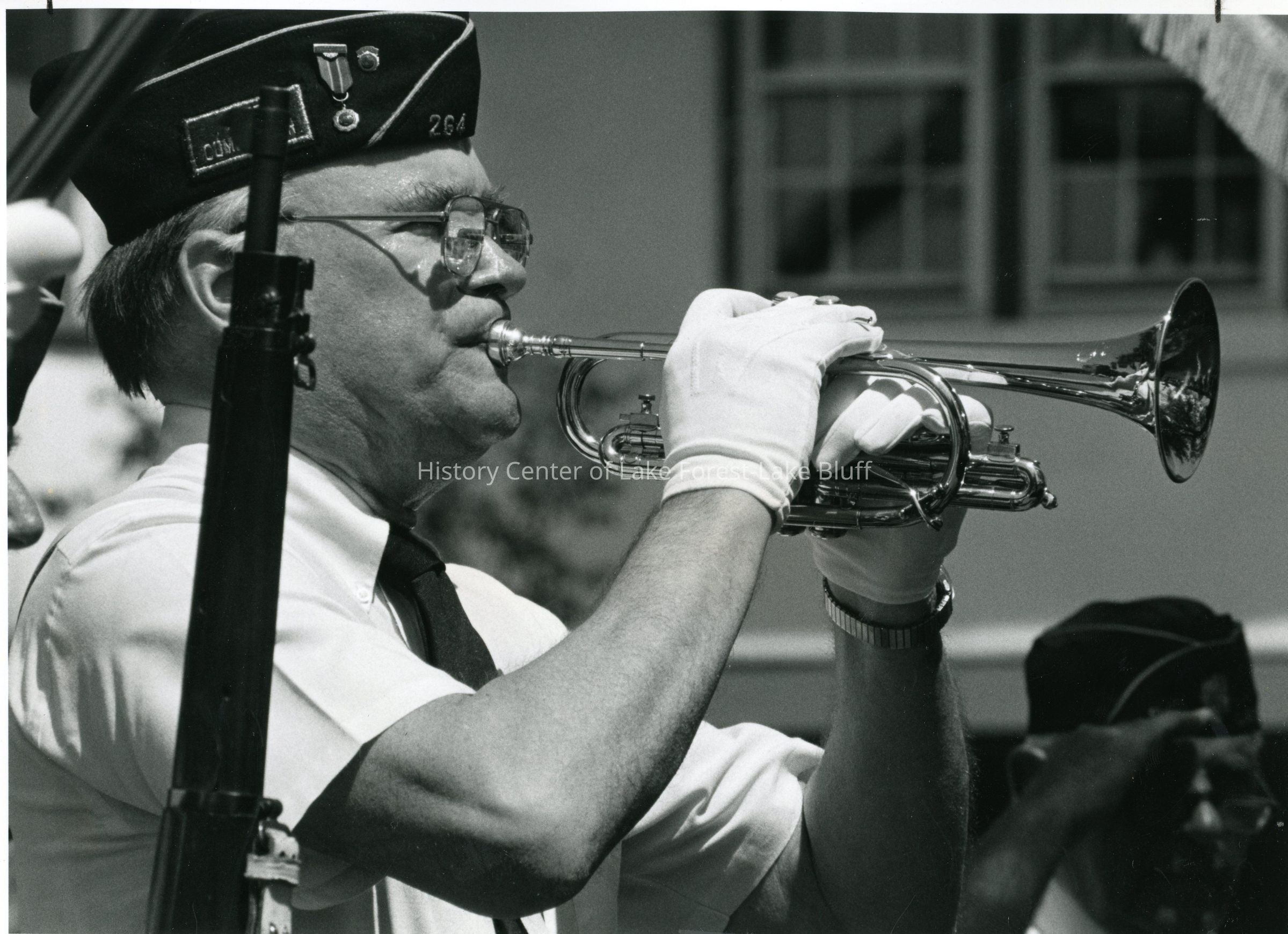 American Legion bugler Roy Moller playing Taps at the 1991 Lake Forest Memorial Day celebration.