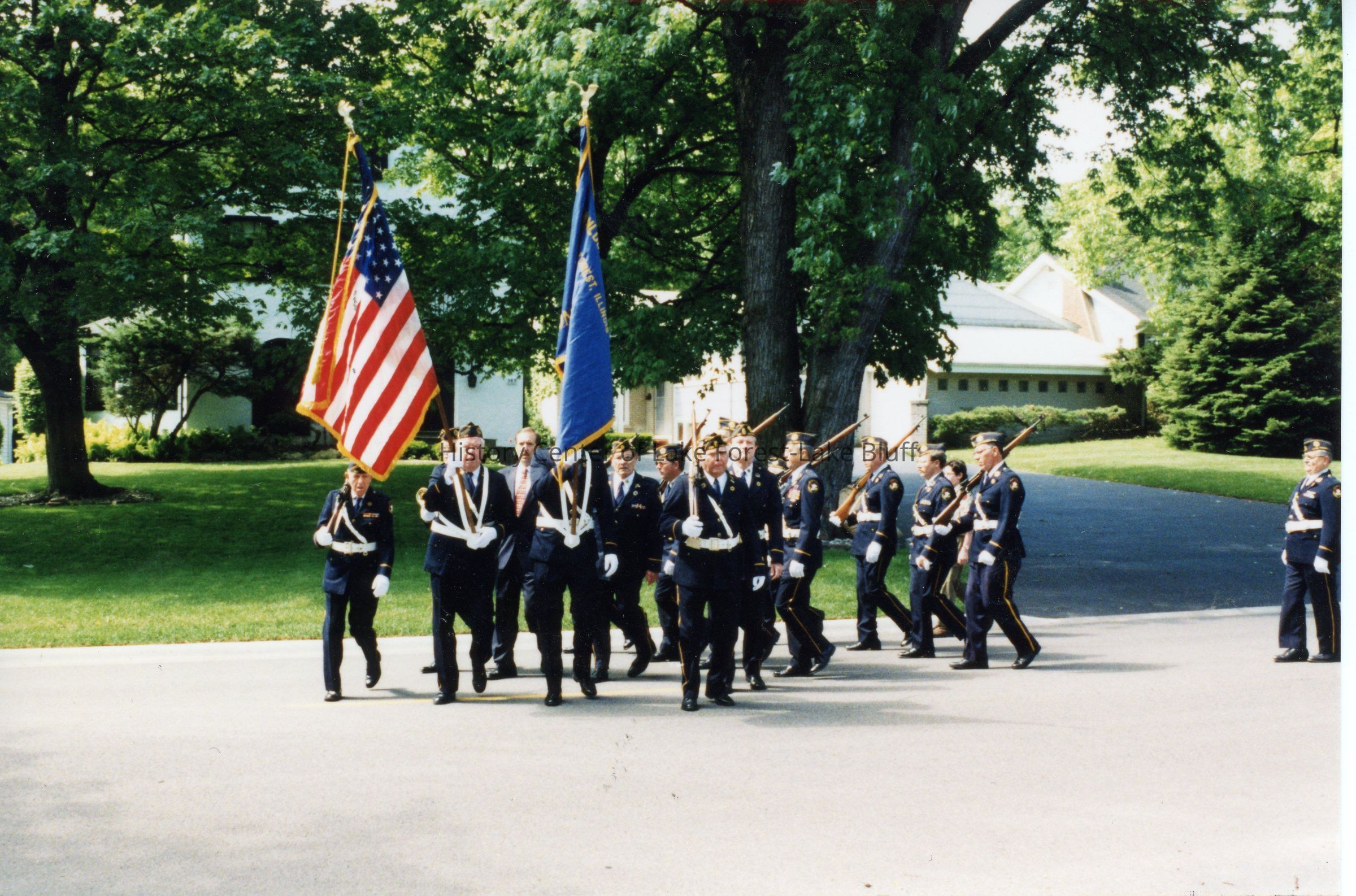Members of the McKinlock Post 264 marching at the Lake Forest Memorial Day celebration, 1998.