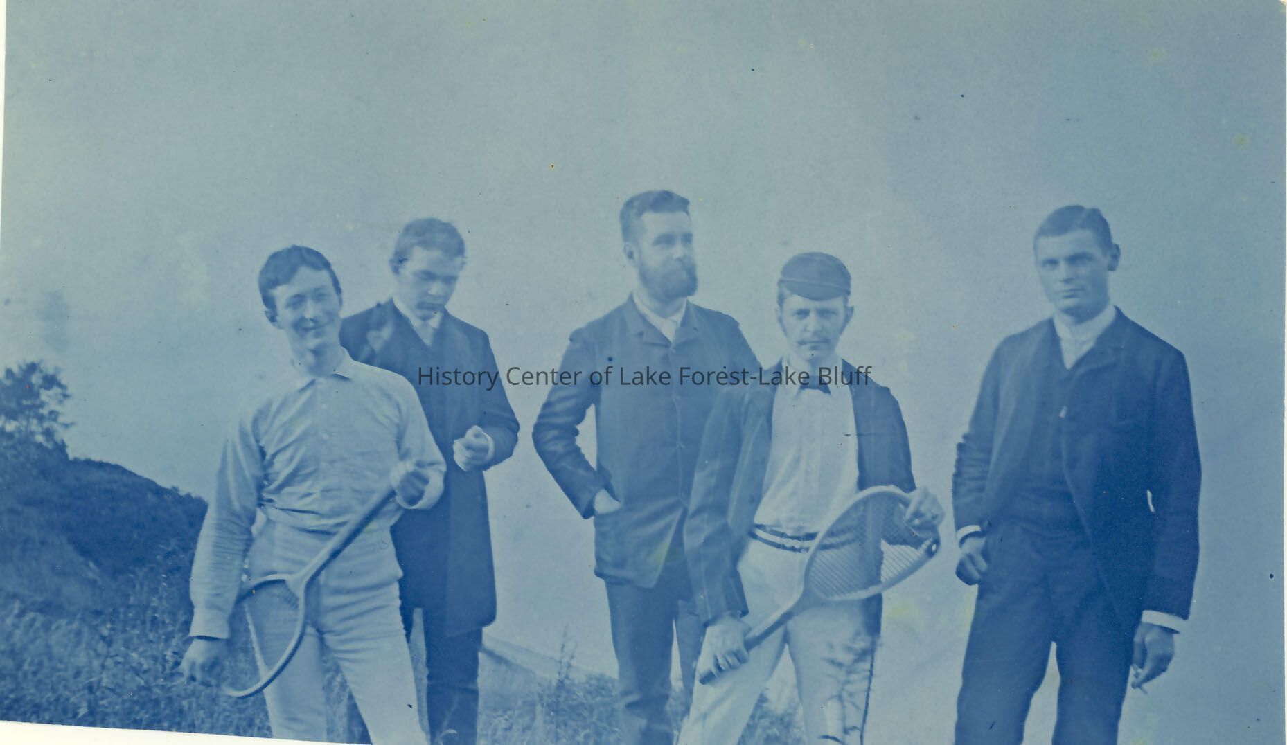 Farwell Family - mostly 1880's 5 men in a photo - 2 with tennis rackets, printed on blue processing paper