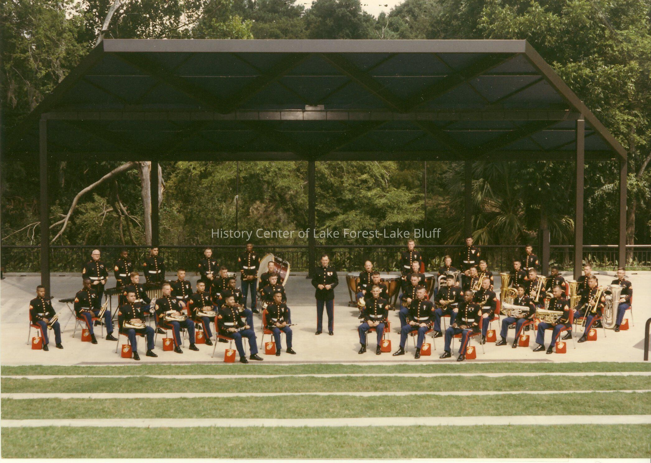 A military band playing at an unkown location.