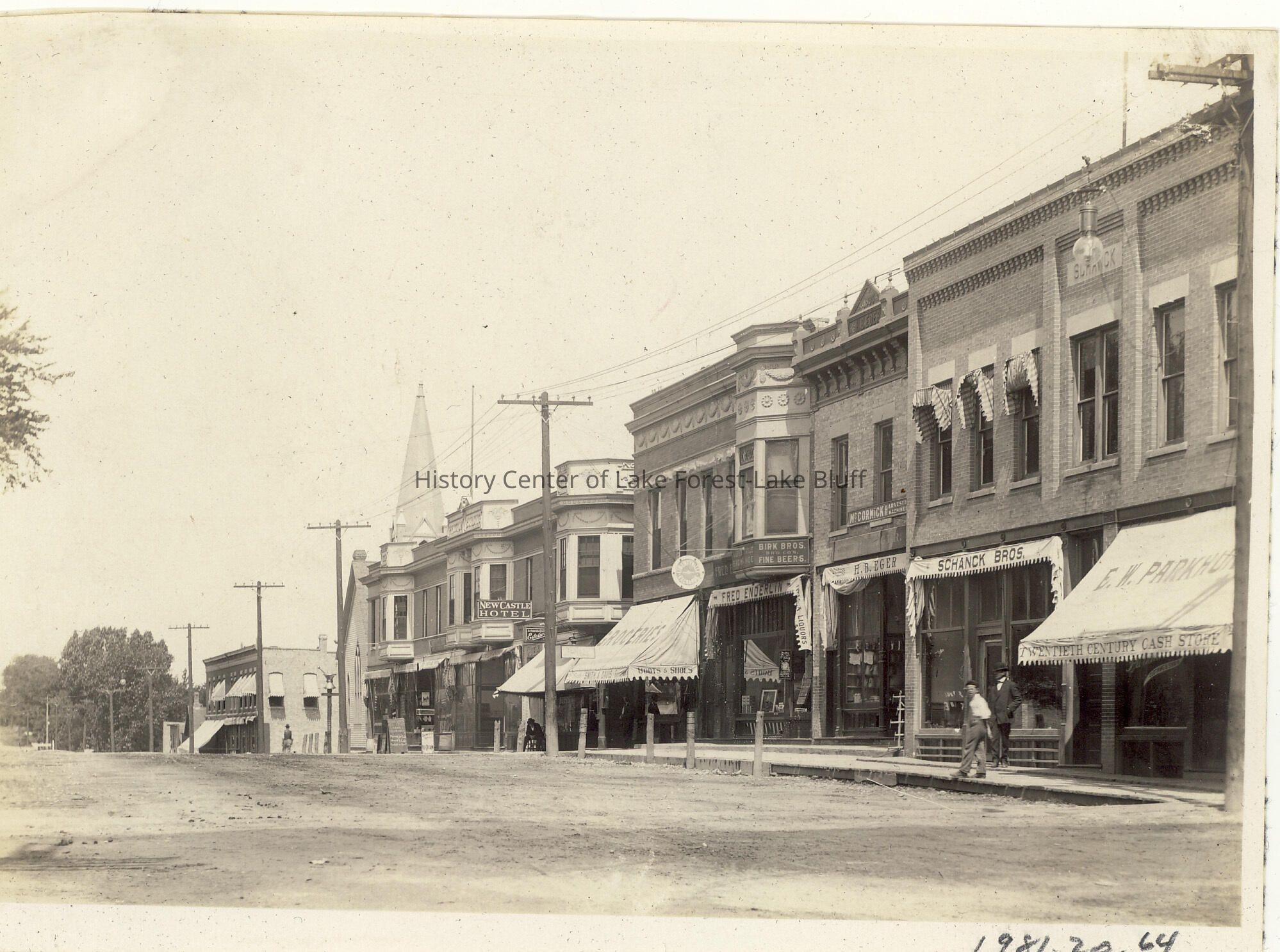 business district, New Castle Hotel, Fred Enderlein, Birk Bros., McCormick, H.B. Eger, Schanck Bros., E.W. Parkhurst (20th century cash store)