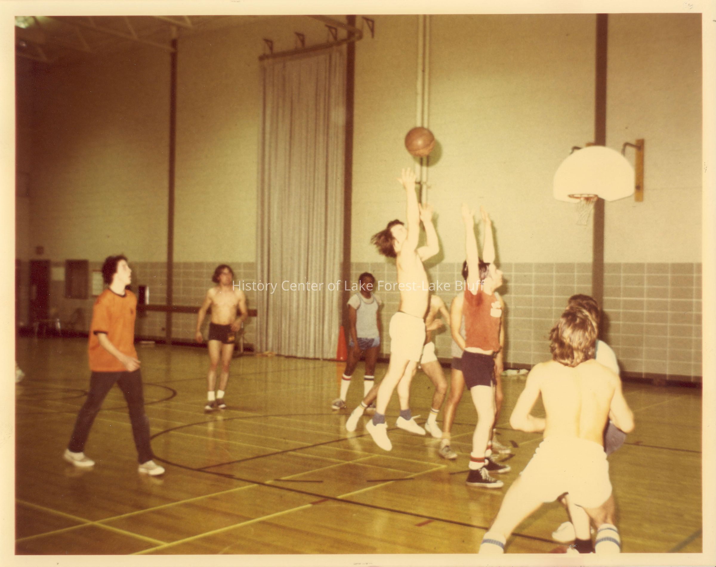 young men playing indoor basketball