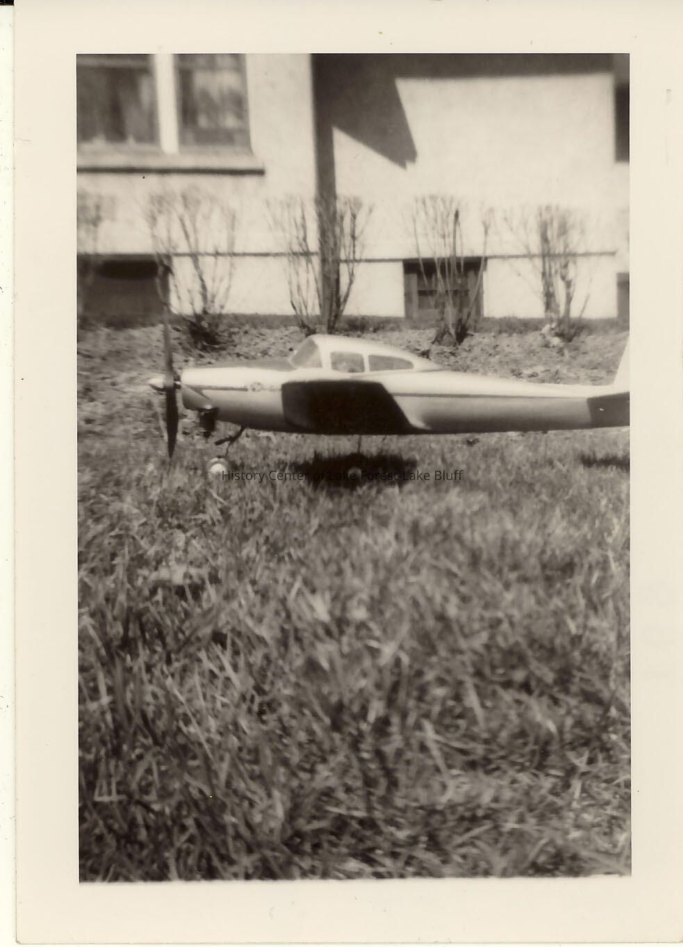 Black and white model airplane, Stanley Wells, Jr. 1275 Edgewood in Lake Forest. 1940s.