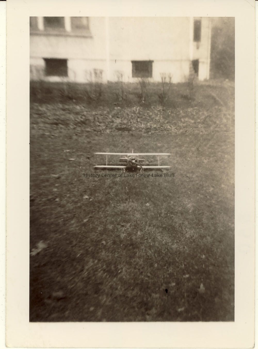 Black and white image of model airplane from Stanley Wells, Jr. 1275 Edgewood in Lake Forest. 1940s.