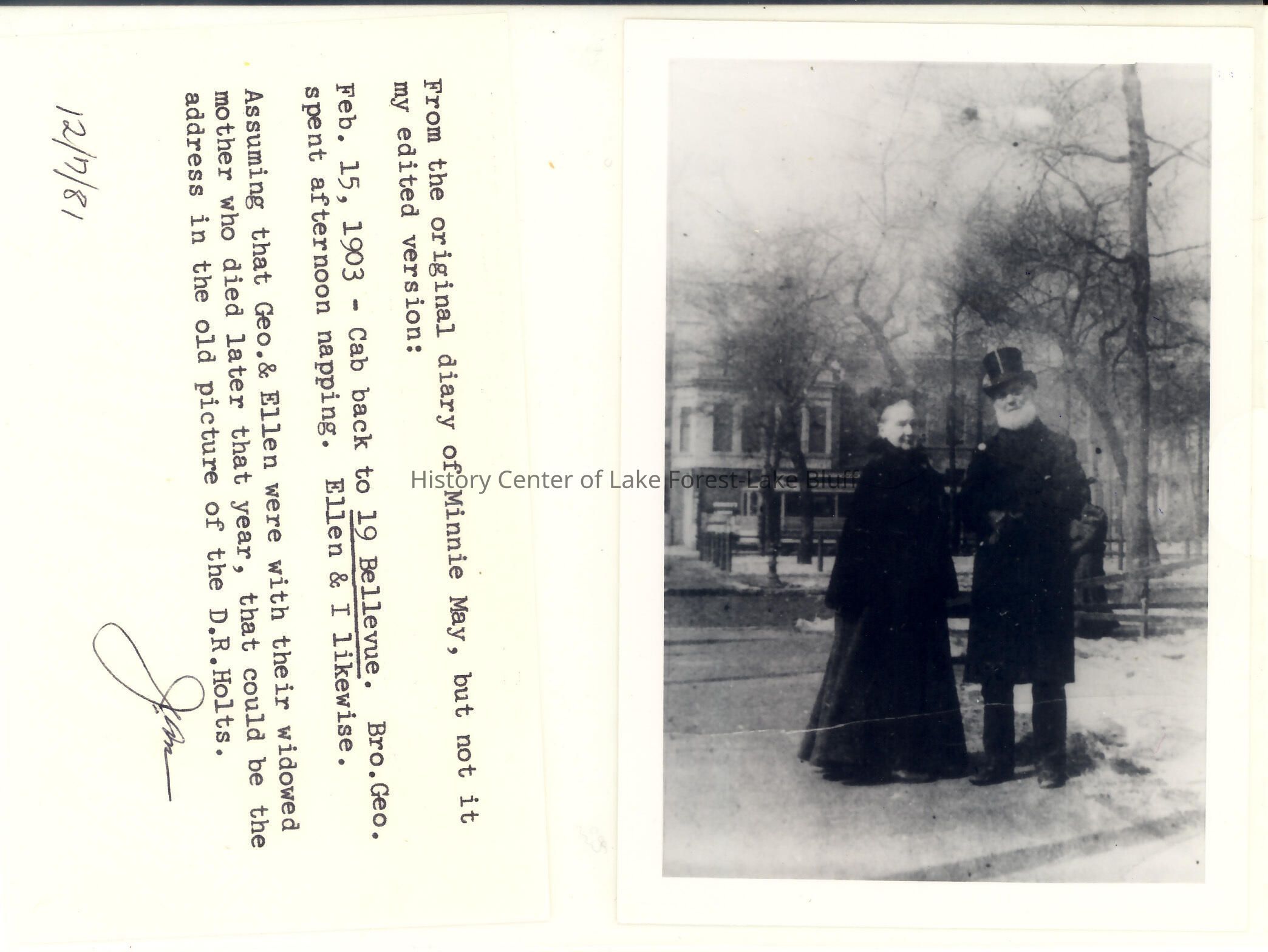 Assuming that Geo. and Ellen were with their widowed mother who died later that year, that could be the address in the old picture of the D.R. Holts. (12/7/81)
