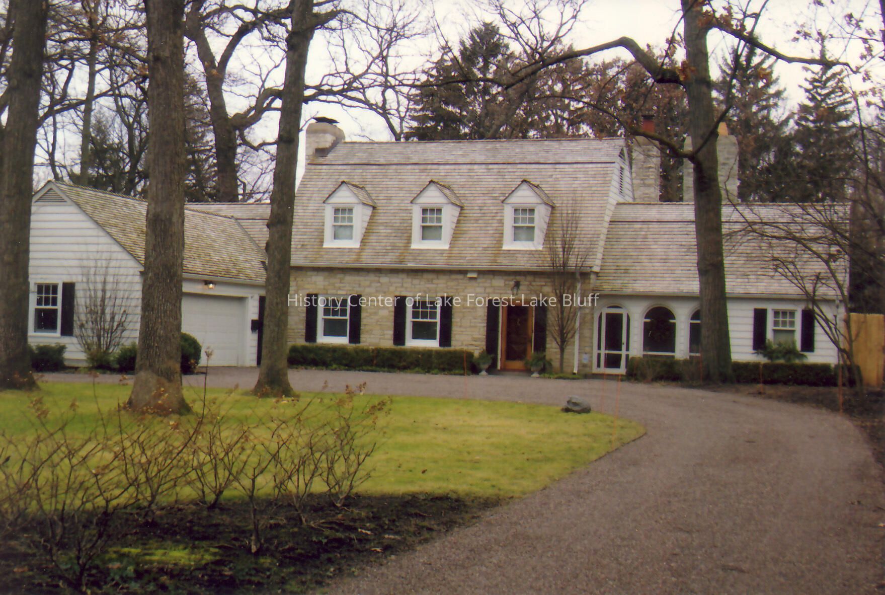 Exterior view from drive way of Walter Frazier home built for Mrs. William H. Hubbard in 1927. Located at 1090 Edgewood Road in Lake Forest, Illinois.