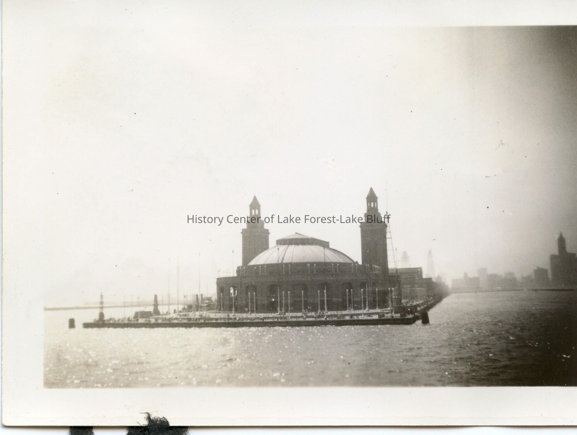 Navy Pier (or Municipal Pier as it was called at first) in Chicago, taken from a boat. Circa 1920s. From the O'Neill family.