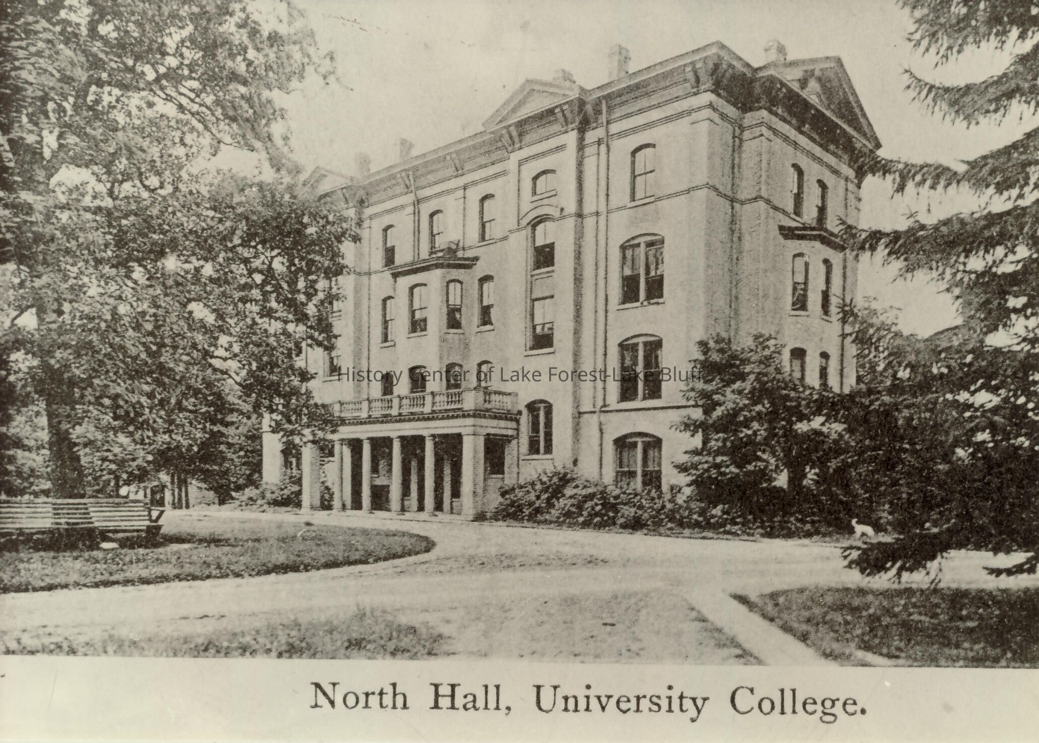 Photo print labeled North Hall, University College (Lake Forest College). Dated 1906. Identical to 2001.105.23. negative included