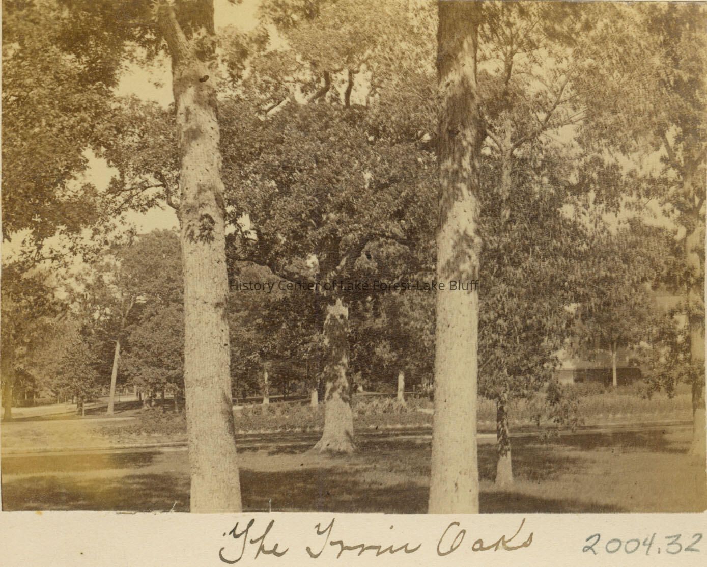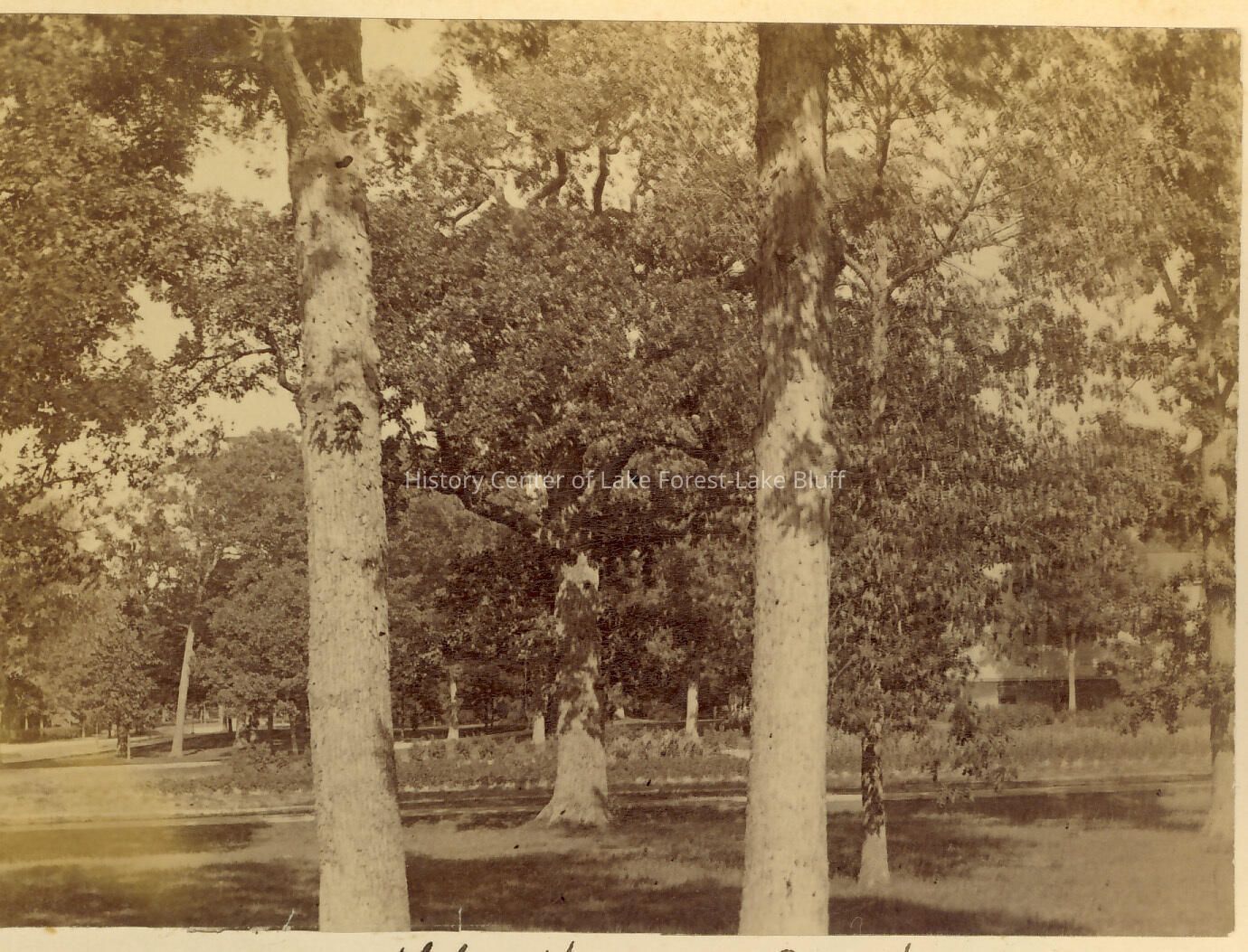 Oak trees on the lawn of the McClure Manse Gienhame (McClure Manse) 487 East Walnut Road, Lake Forest Rev. James G. K. McClure; Cobb & Frost 1885 photo is mounted on an album page