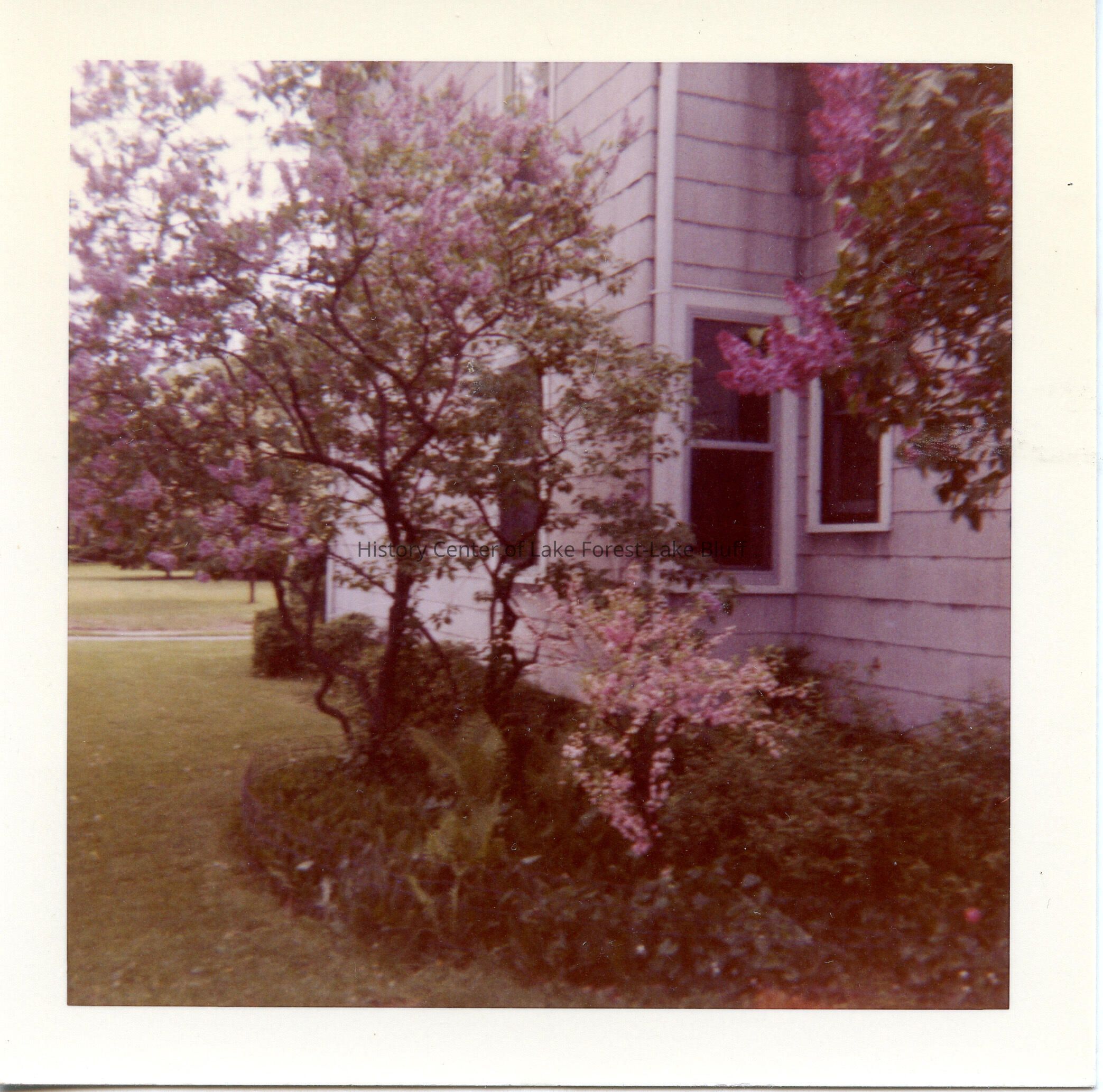 Lilac bushes in spring bloom next to house at the corner of Oakwood and Westminster. Photo printed July 1961.
