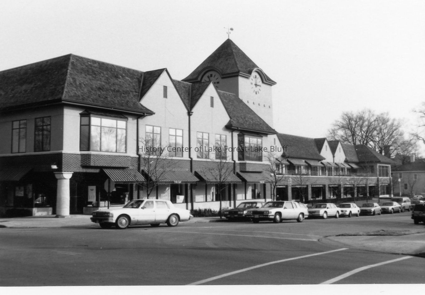 A picture of the businesses on the corner of Oakwood and Deerpath.