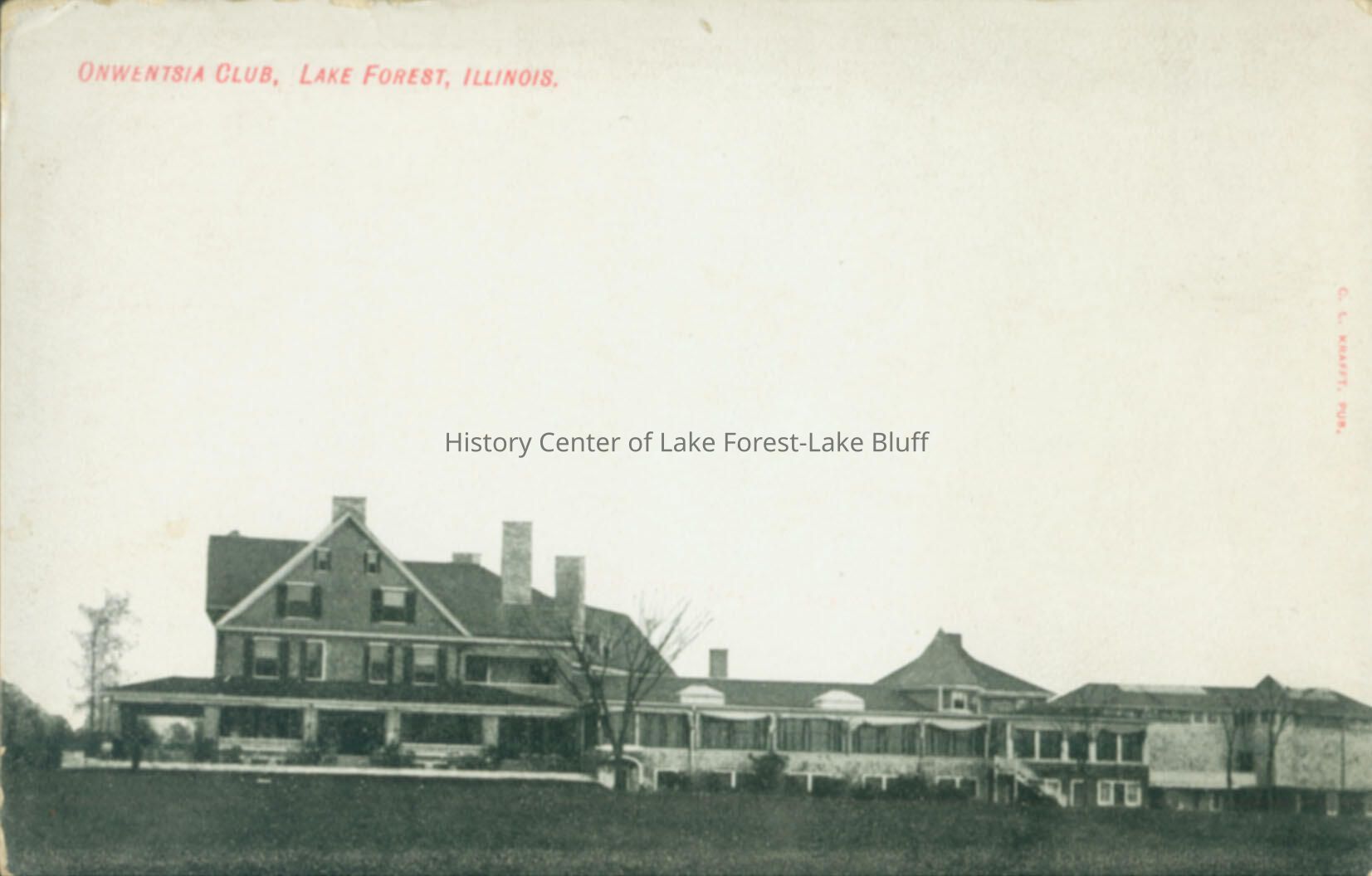 Onwentsia Club - Henry Ives Cobb clubhouse. Original postcard image of south face of the building including porch.