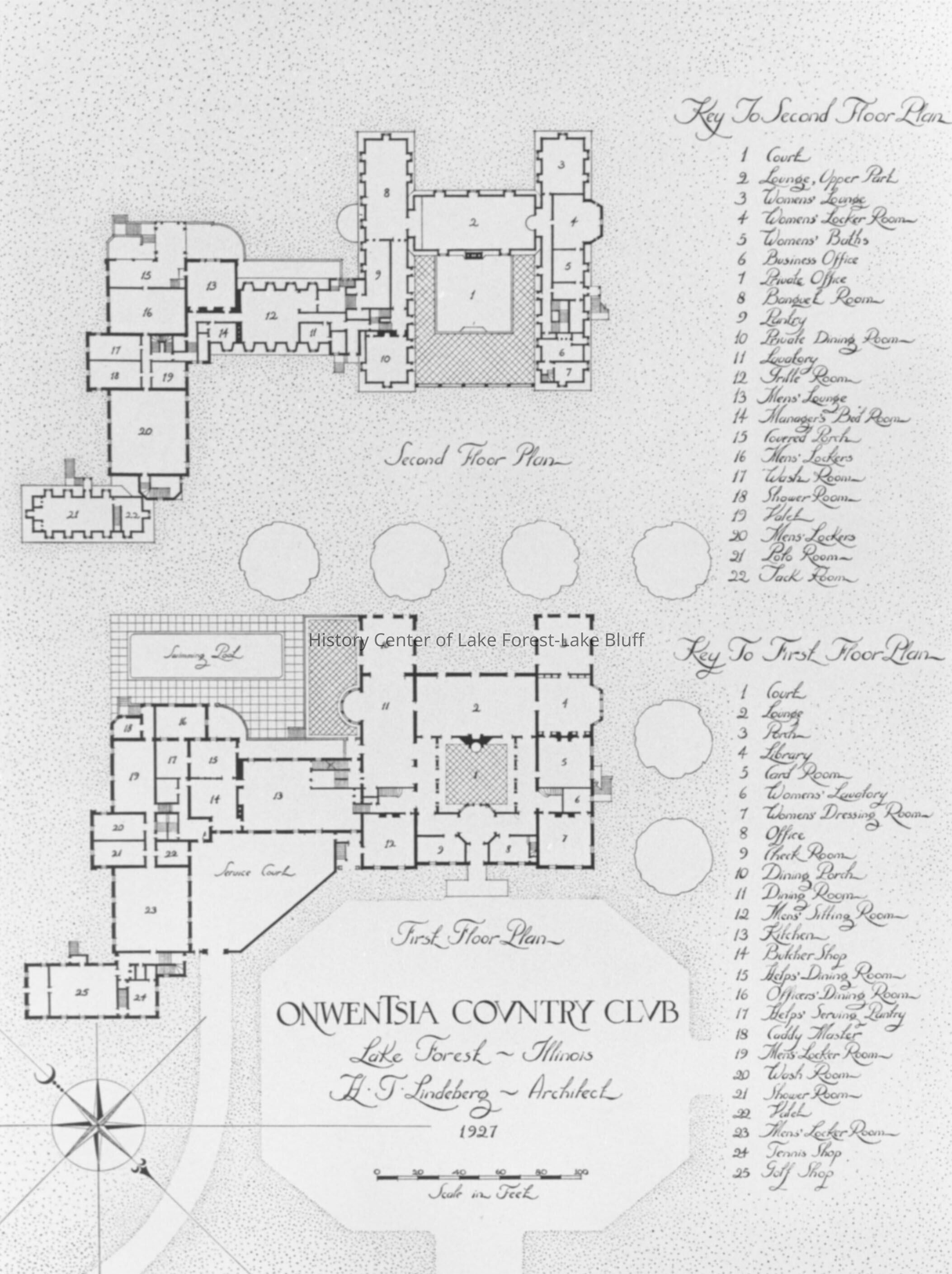 First floor plan for Onwentsia Country Club designed by H.T. Lindeberg in 1927 300 N. Green Bay Road