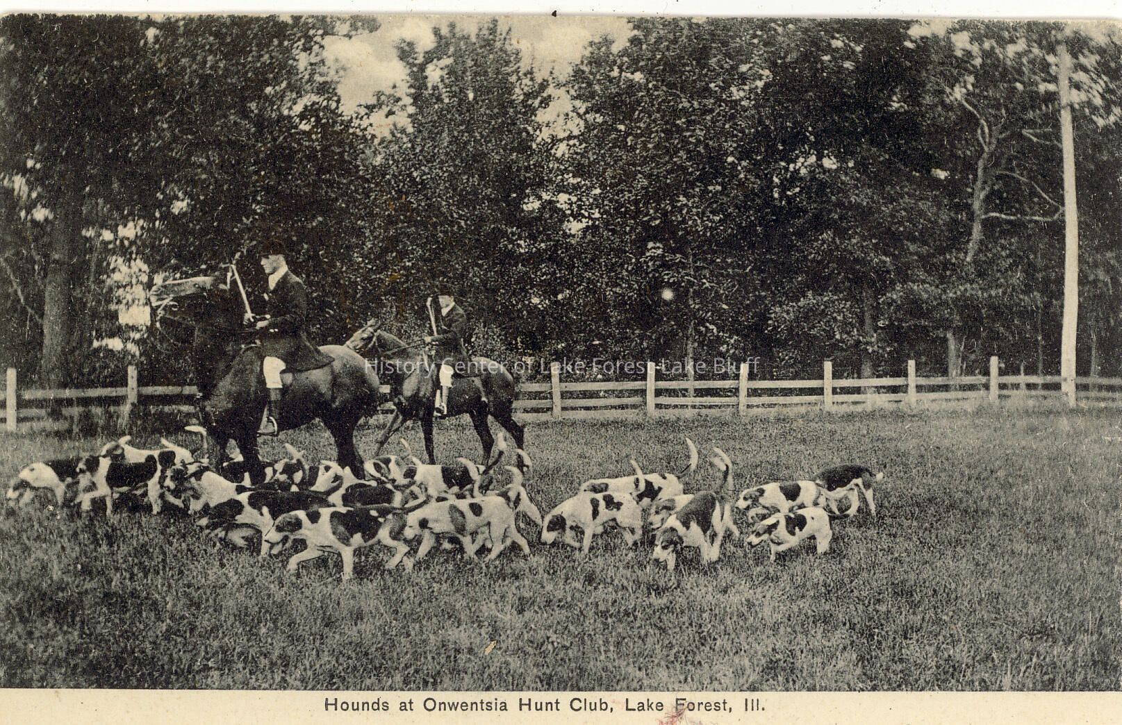 Postcard of Hounds at Onwentsia Hunt Club, Lake Forest, Illinois