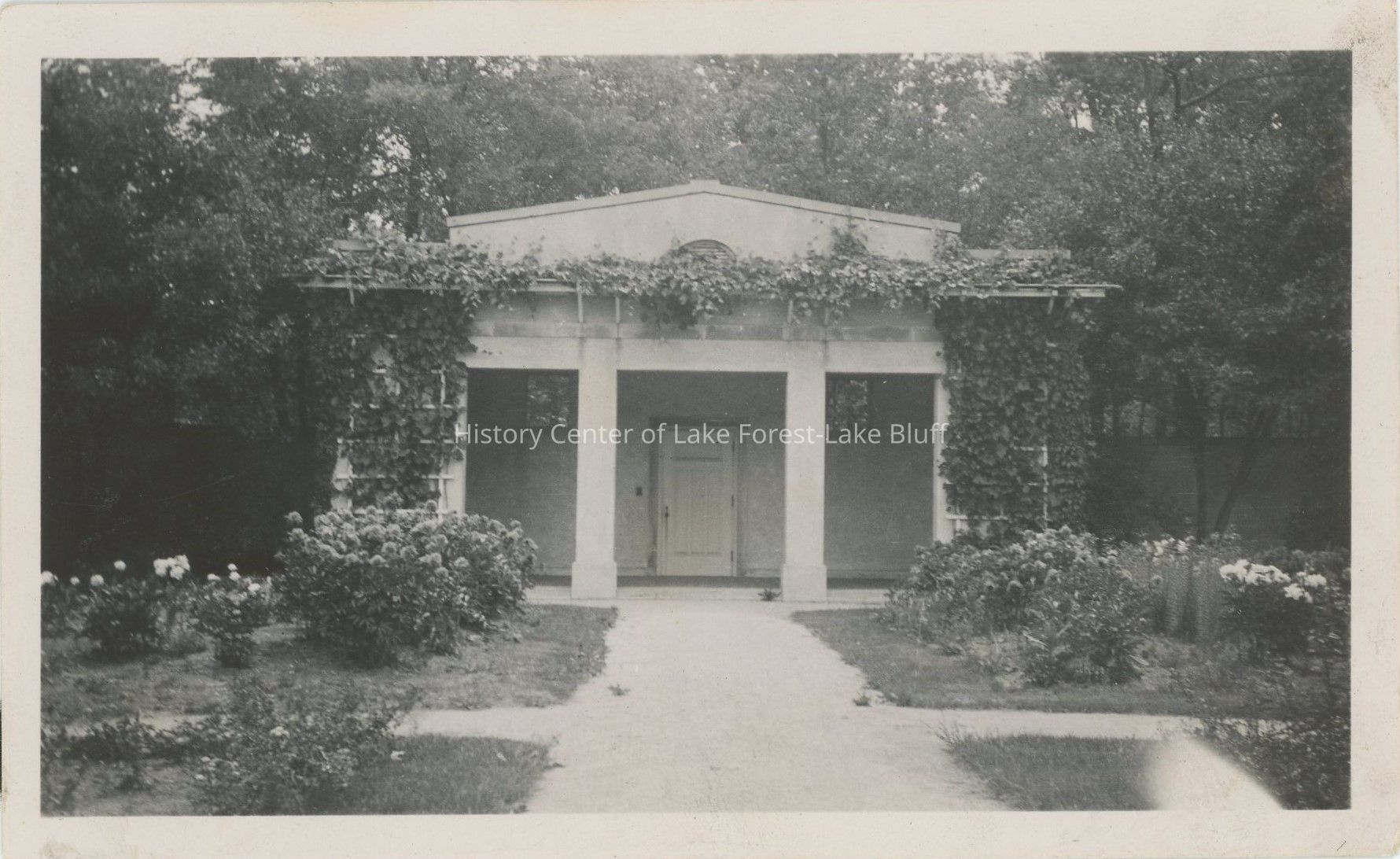 Unidentified outbuilding in gardens at Villa Turicum, the Harold F. and Edith Rockefeller McCormick estate. From the collection of John "Jack" and Edythe Dunford, estate caretakers. Dated 1930.Photograph Details