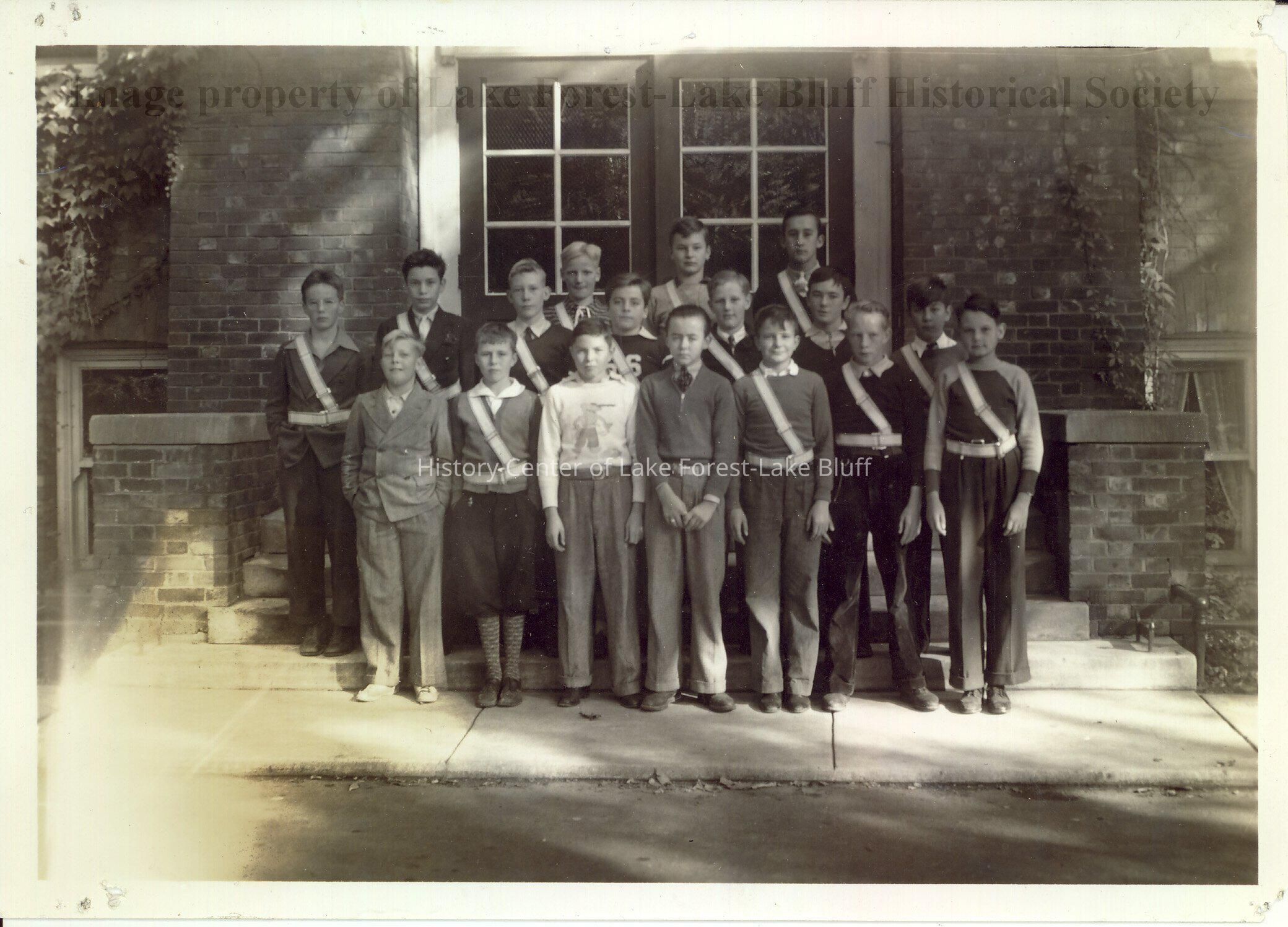 Patrol Boys, 1938-1939, standing on the steps of Gorton School.
