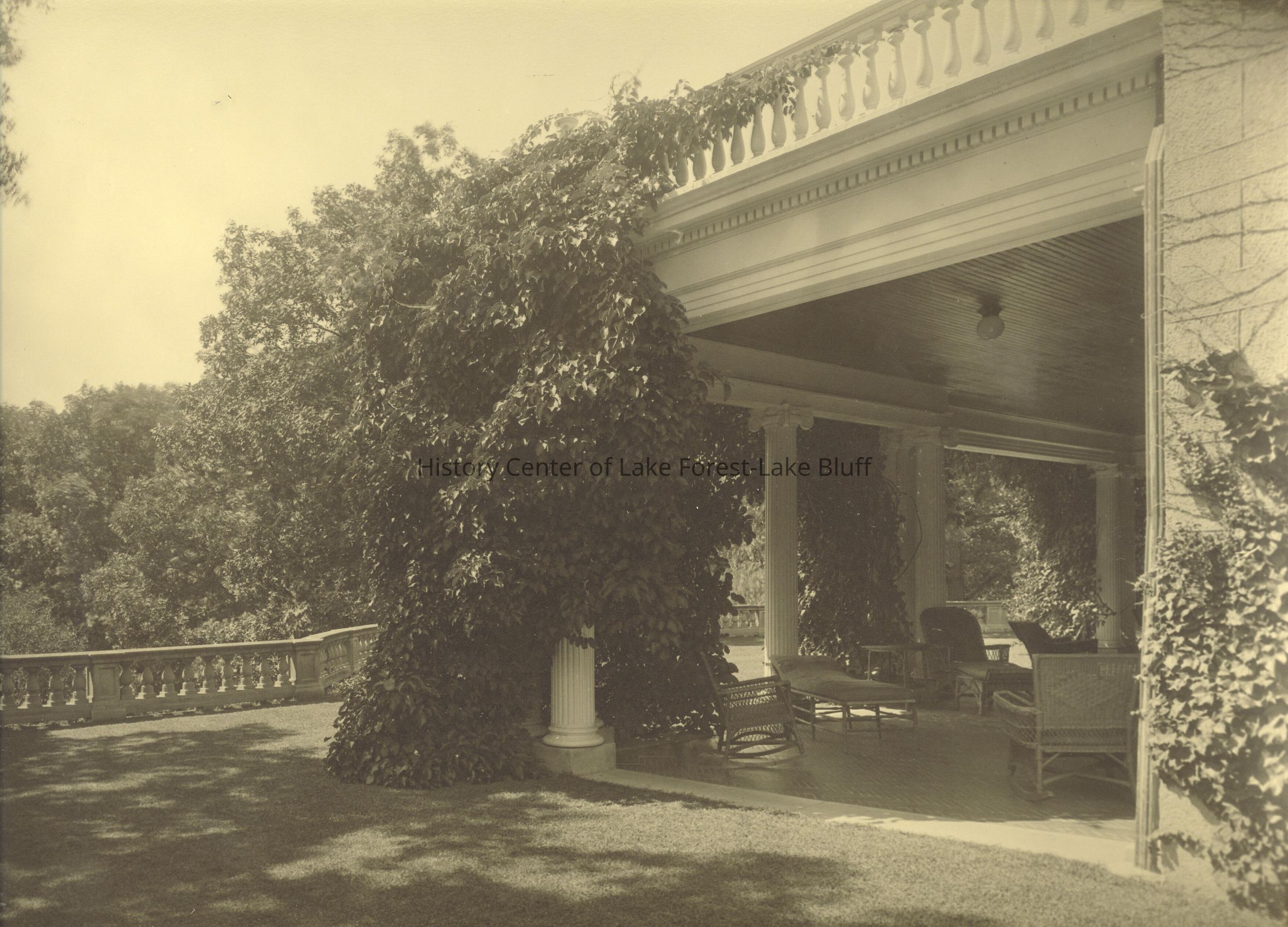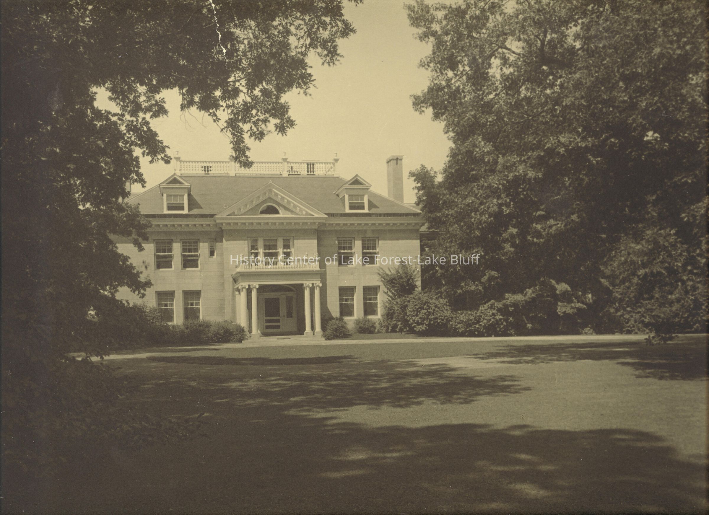 Original property stretched from Green Bay Road to the Skokie River valley and from Westminster Avenue on the north almost to Pembroke Drive on the south. Garage designed by Stanley Anderson in 1928. Carriage house at 530 N. Green Bay; Chauffeur's quarters at 454 Oakwood; Servants' quarters at 210 Vine.