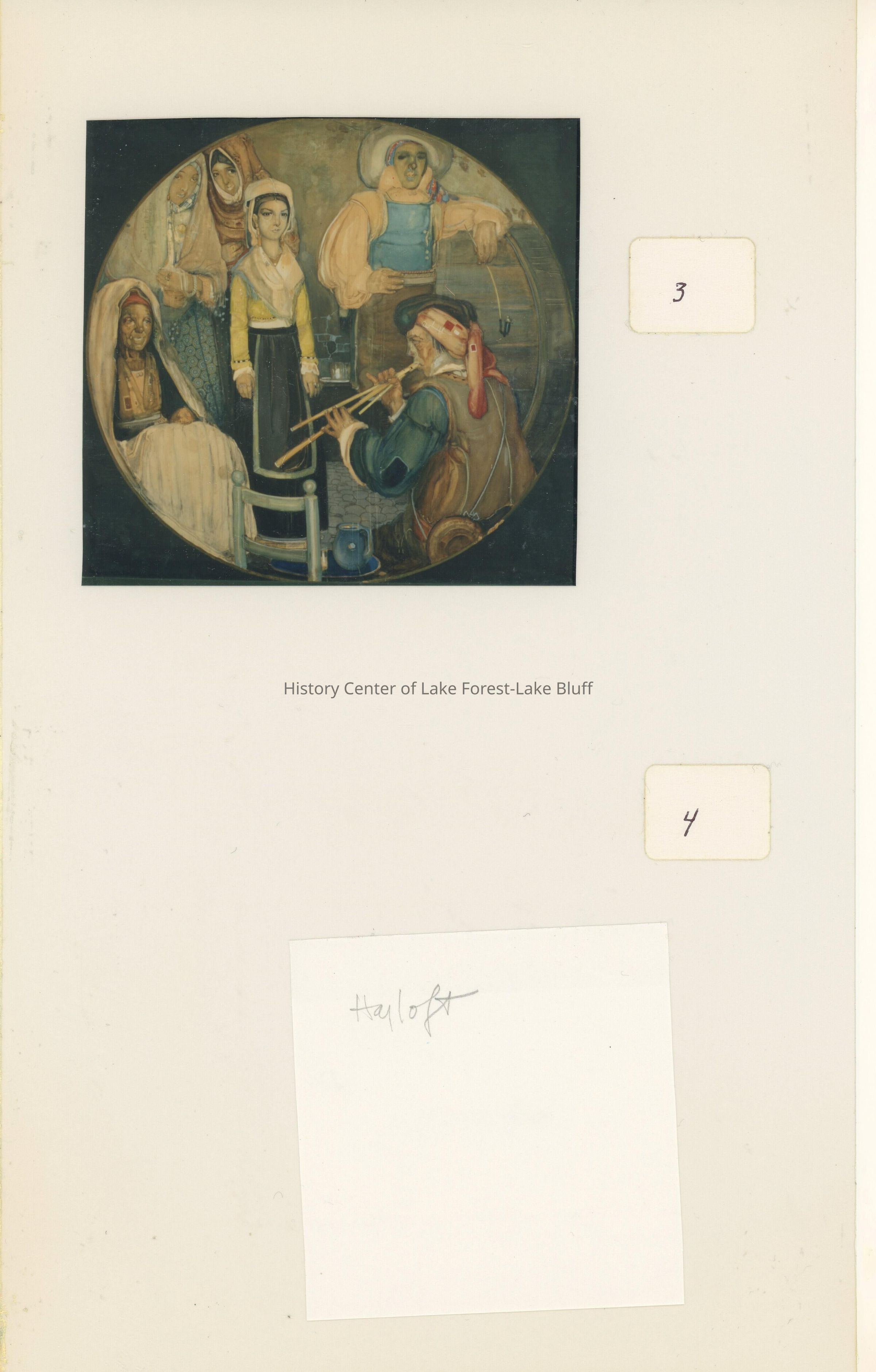"#3: This hung in Hayloft, on the second floor. Its large, about five by five and people who see it for the first time, often asked if M.C. [Mary Cornelia, wife of donor] painted it. It is untitled and although people recall seeing it in Hayloft, no one knows who painted it. It might have been a purchase when Mary and Arthur were in Europe so often; Mary might have commissioned it for she had artists living in the compound all the time."