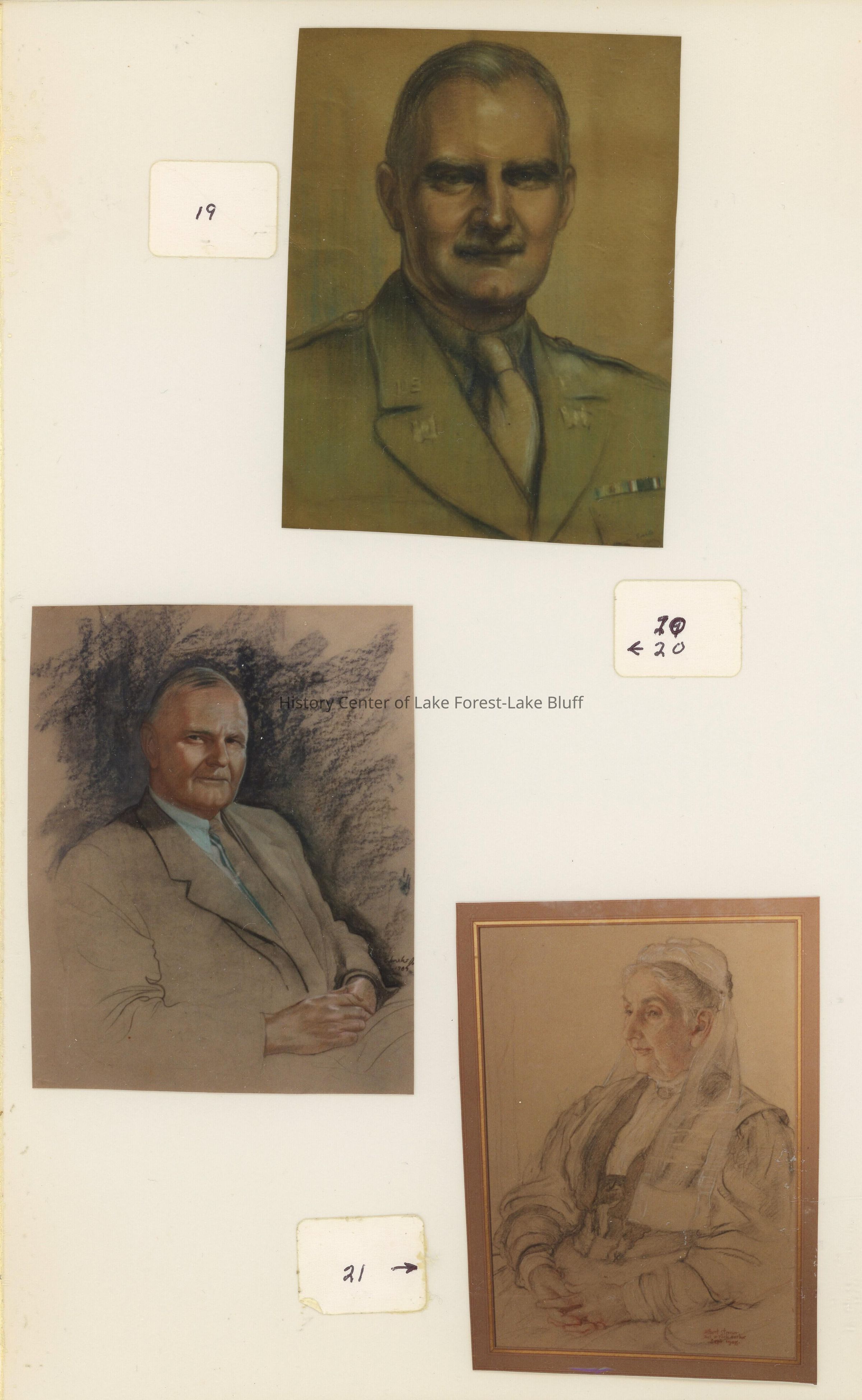 "#19 & #20: A painting of Graham when he was in England during the war. An English lady artist, unknown to Graham, asked to paint him as what she thought of as a typical American officer. Graham, who hated to pose for a portrait as too tedious, agreed. Graham liked it enough to send it to his mother and she hung it in the Playhouse. Just before the wrecker's ball was to come in when the phone company was about to build on a portion of the Aldis' property they bought, I went through all of the buldings with Graham one Sunday afternoon after lunch. There were truck loads of things I wanted to save, and, some of them I did. There was this portrait and I did not know how to approach it. 'Surely that is not going to go with demoloshing the building," I suggested. Graham: "If you want it, I'd be pleased." I carried it out of the building to our station wagon, on the spot."