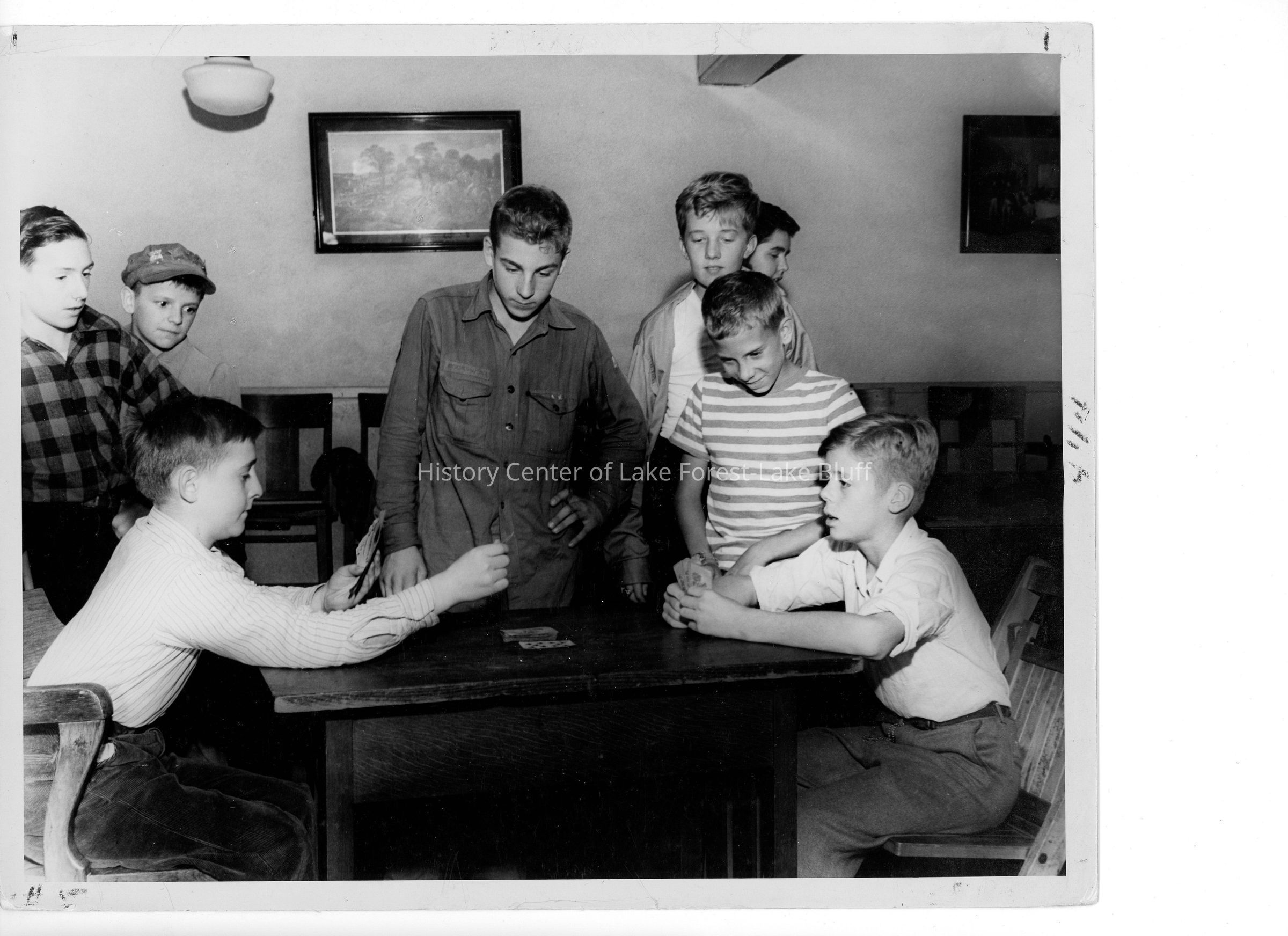 Photo of an unidentified group of boys playing cards.