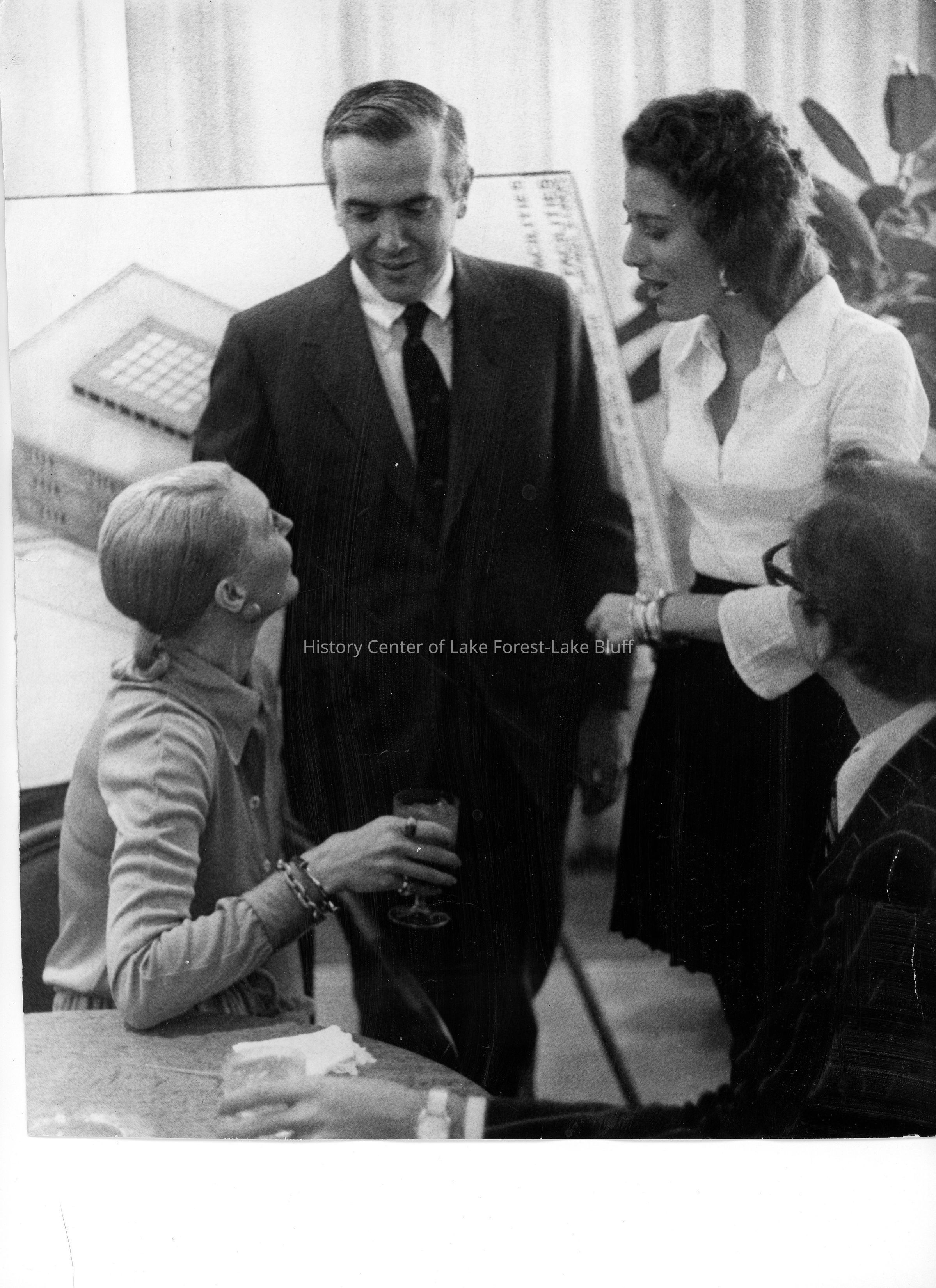 "Plans for the Presbyterian-St. Luke's 47th annual fashion show are discussed by (clockwise from 12 o'clock) Harold Byron Smith Jr., of the executive board of the medical center, Joan Blair, who will model for I. Magnin's, Edward V. Nicholson, general manager and Barbara West, fashion coordinator for Magnin's." Credit: Chicago Daily News.