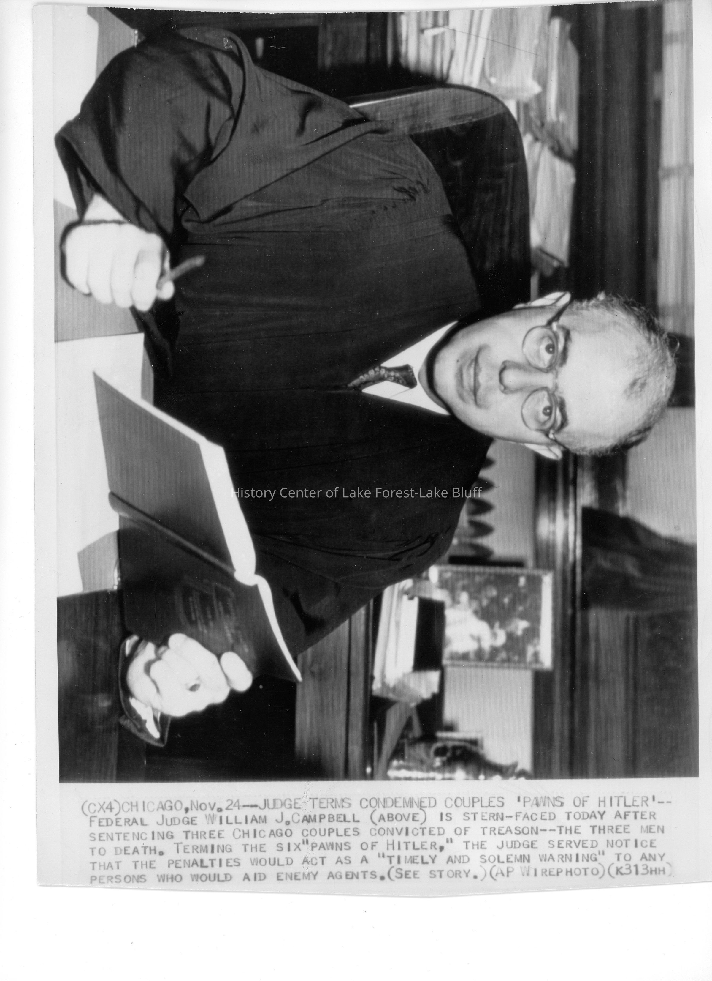 Photo of Judge William J. Campbell after sentencing three couples convicted of treason.Photograph Details