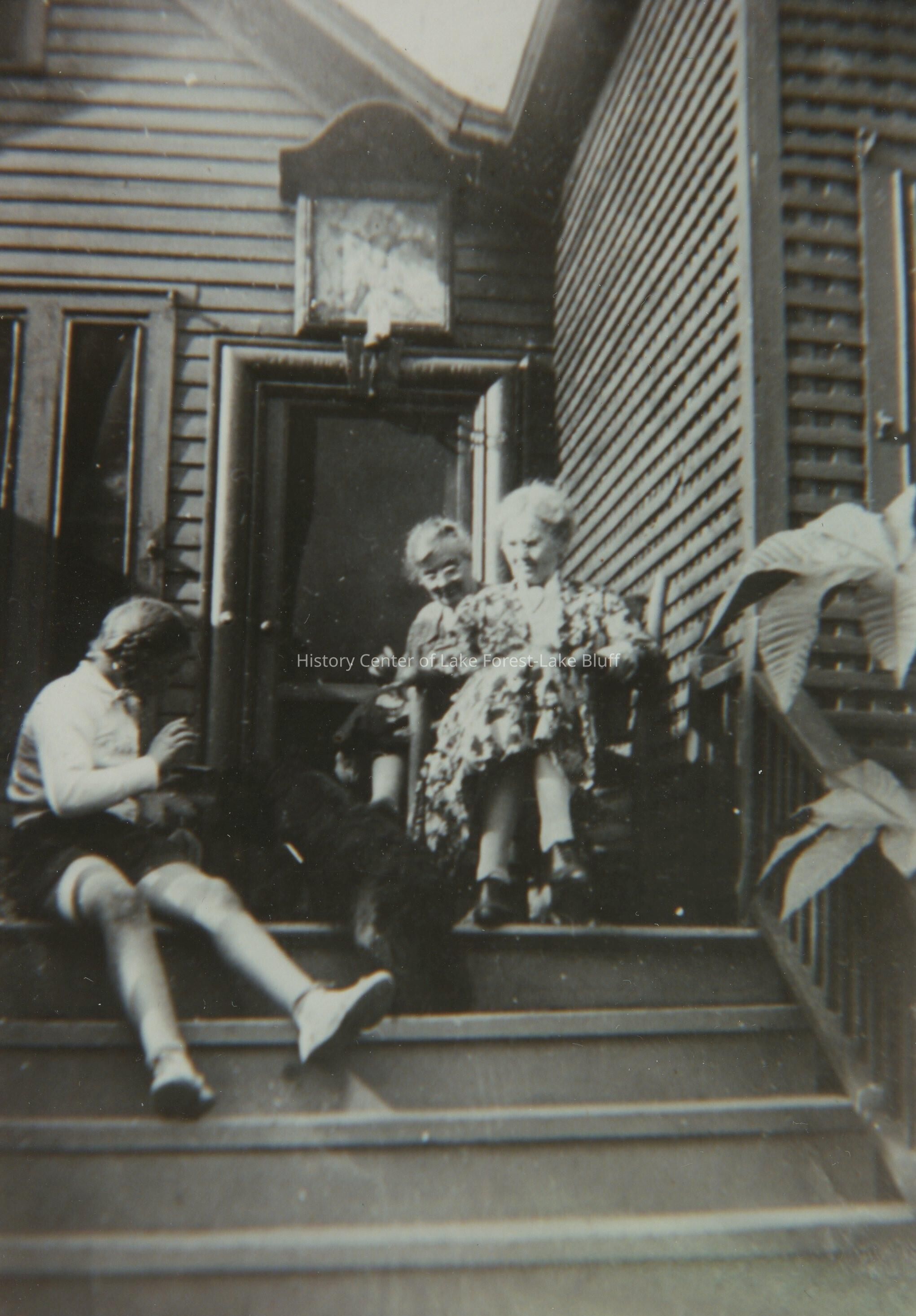 The Playhouse contained a doorway on the extreme right end of the building with a brick walk that led to two cottages beyond: Bluebird and the Hayloft. The brick walk also led to a gate in the high board fence that once surrounded the property along Deerpath and Greenbay. On the gatepost was a ceramic tile of the address: 134 so that mail could go directly to the Playhouse or the cottages."
