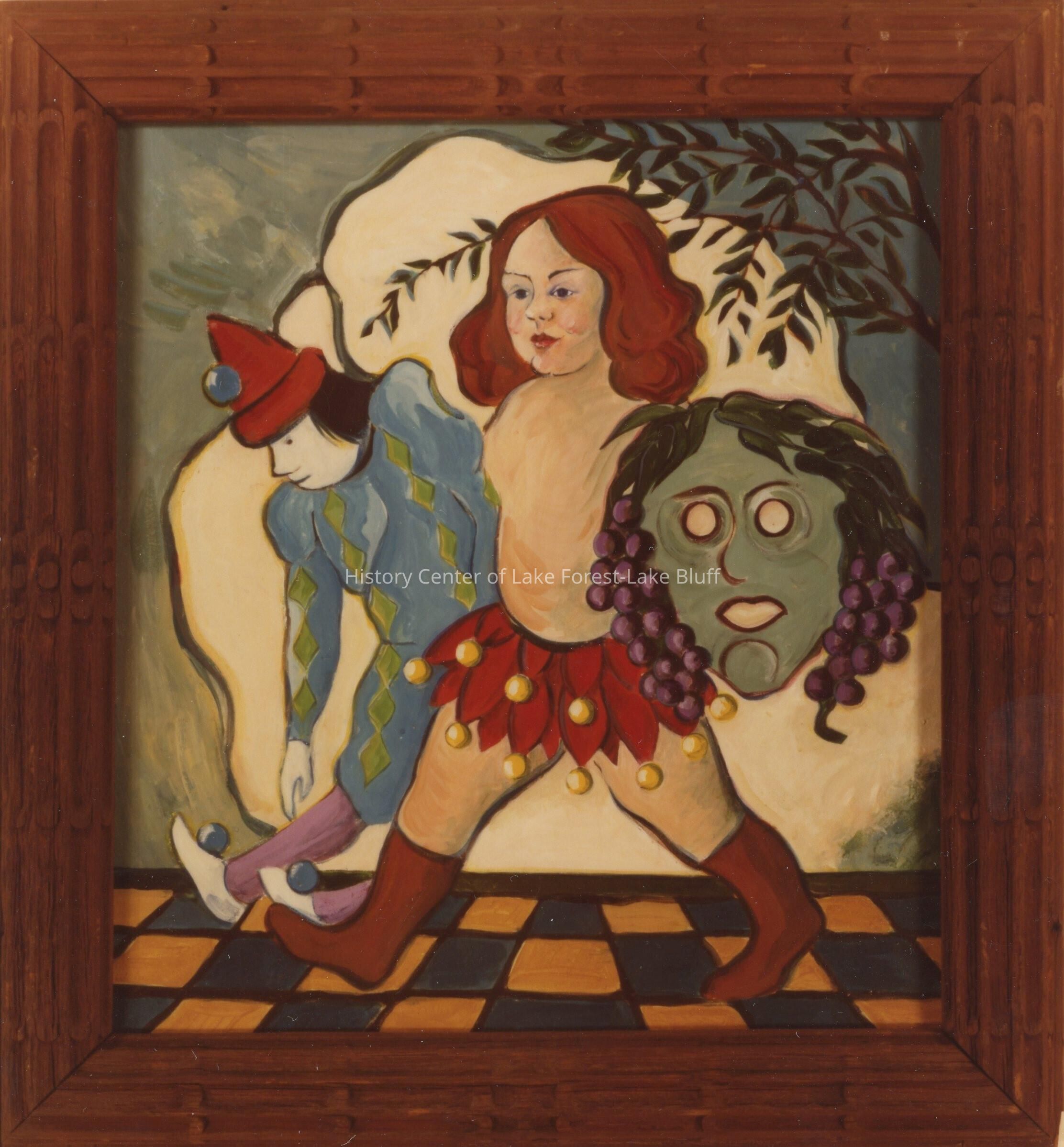 The original work of art was in oil, painted on galvanized steel, obviously intended to hang outside, mounted in a heavy cedar frame. Although the colors were quite vivid, after all of these years of exposure, the paint had cracked and falked off here and there. A South Haven artist / restorer, Barbara Houlberg, concluded the original could not be touched up. Working from the original and blow-ups, she duplicated the original.