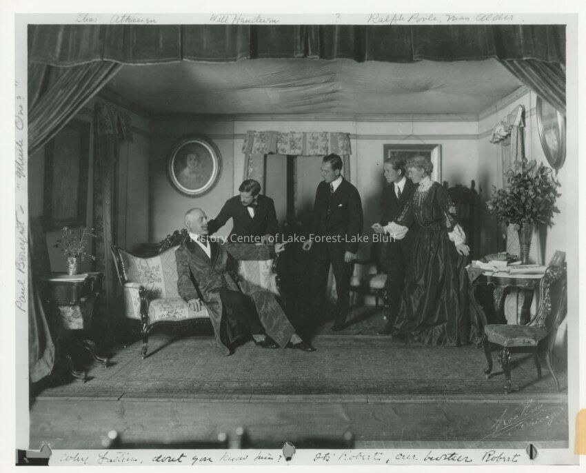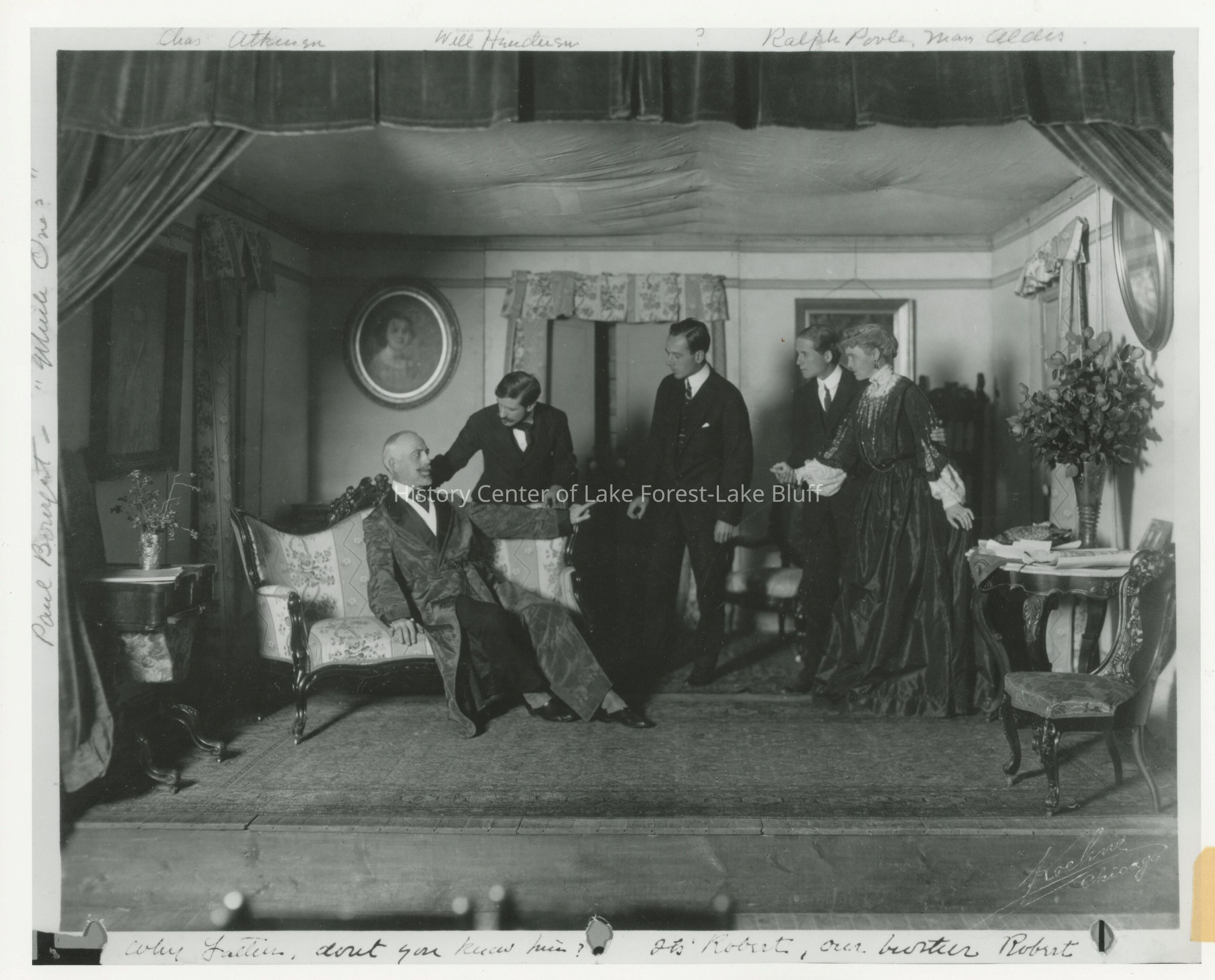 Undated photograph of a playhouse production. The original photograph has notes from Roy Porter scribbled in the margins. Object is a recent photograph of the older original. Dating for orignal unknown as well.
