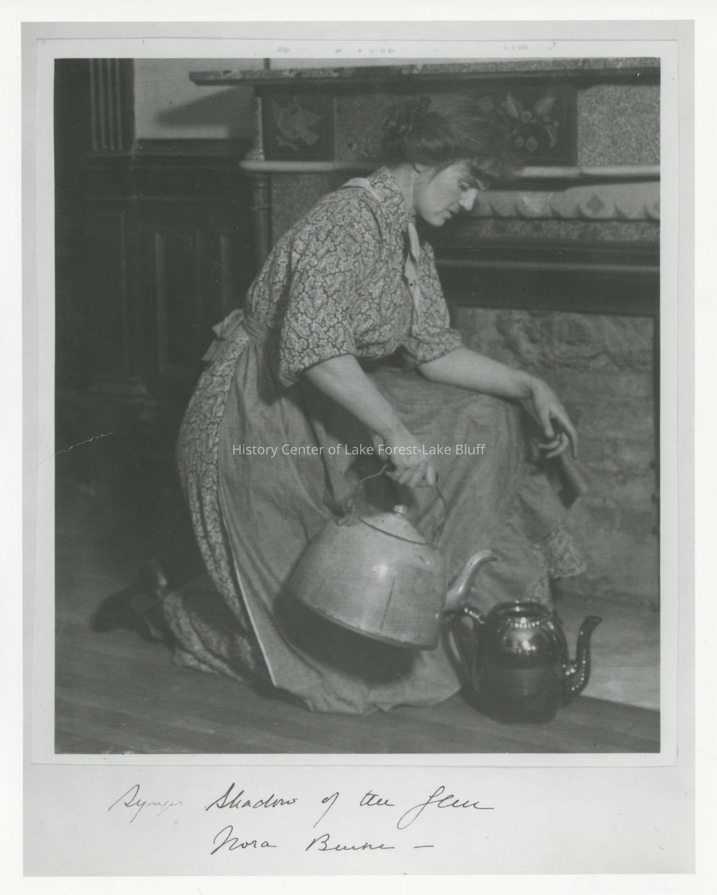 Undated photograph of Nora Burne (possibly Burke) in "Shadow of the Fluer". Most likely a production still from a show put on at the Playhouse. Object is a recent photograph of the older original. Dating for orignal unknown as well.
