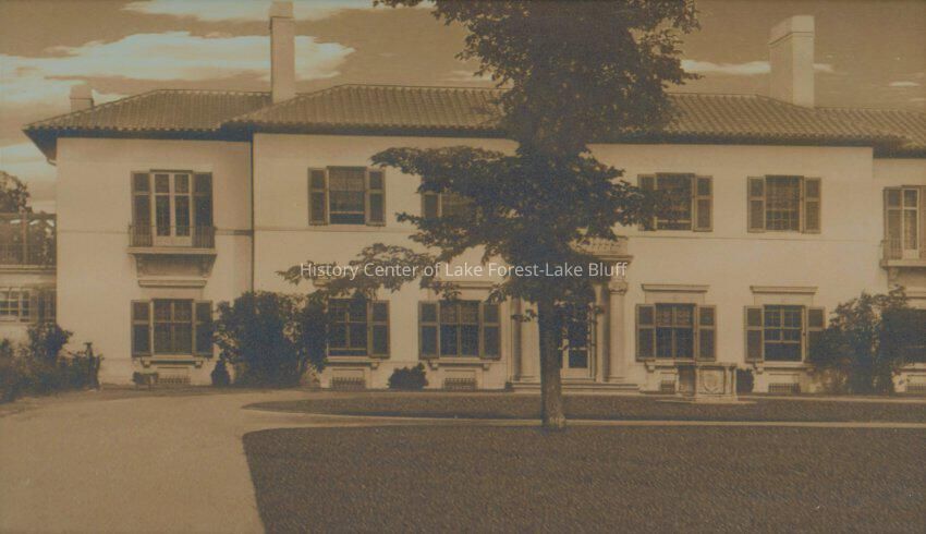 Undated reprint of Villa Turicum circa 1912, shortly after construction was completed. Housed in a wooden fram. The backing has a label for the Ertz Framing Shop taped onto it. Underneath is a label which reads: