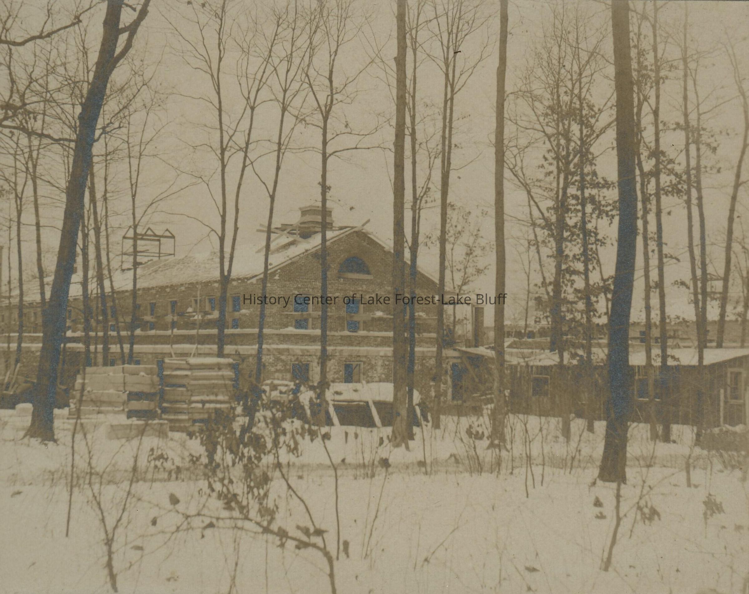 Undated photograph of the construction of the Villa Turicum garages. Villa Turicum was the estate of Harold F. McCormick, now razed. Photo taken during the construction of Villa Turicum (1908-1912)