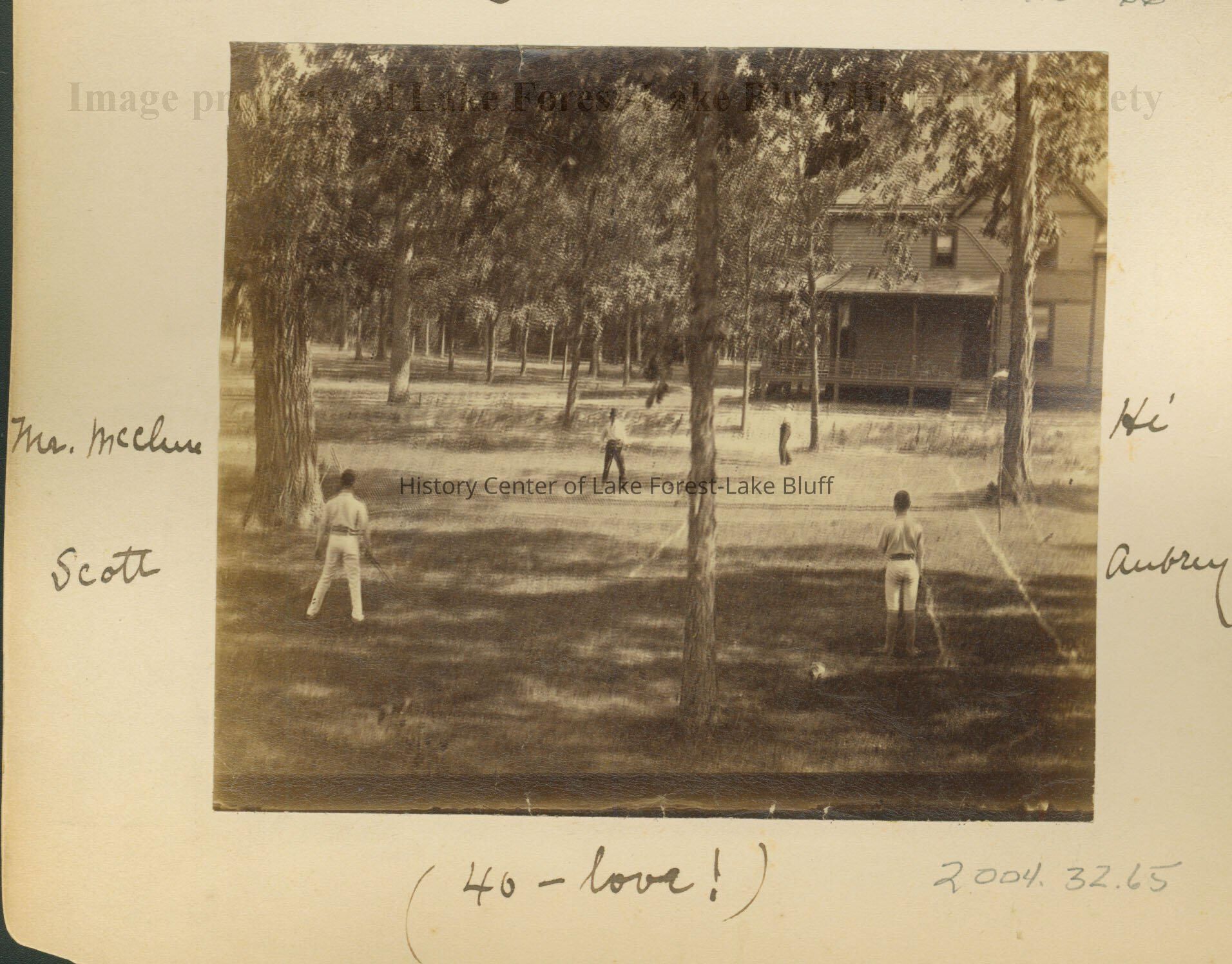 playing tennis Ms. McClure, Scott, Hi, Aubrey (40-love!) Gienhame (McClure Manse) 487 East Walnut Road, Lake Forest Rev. James G. K. McClure; Cobb & Frost 1885 photo is mounted on an album page