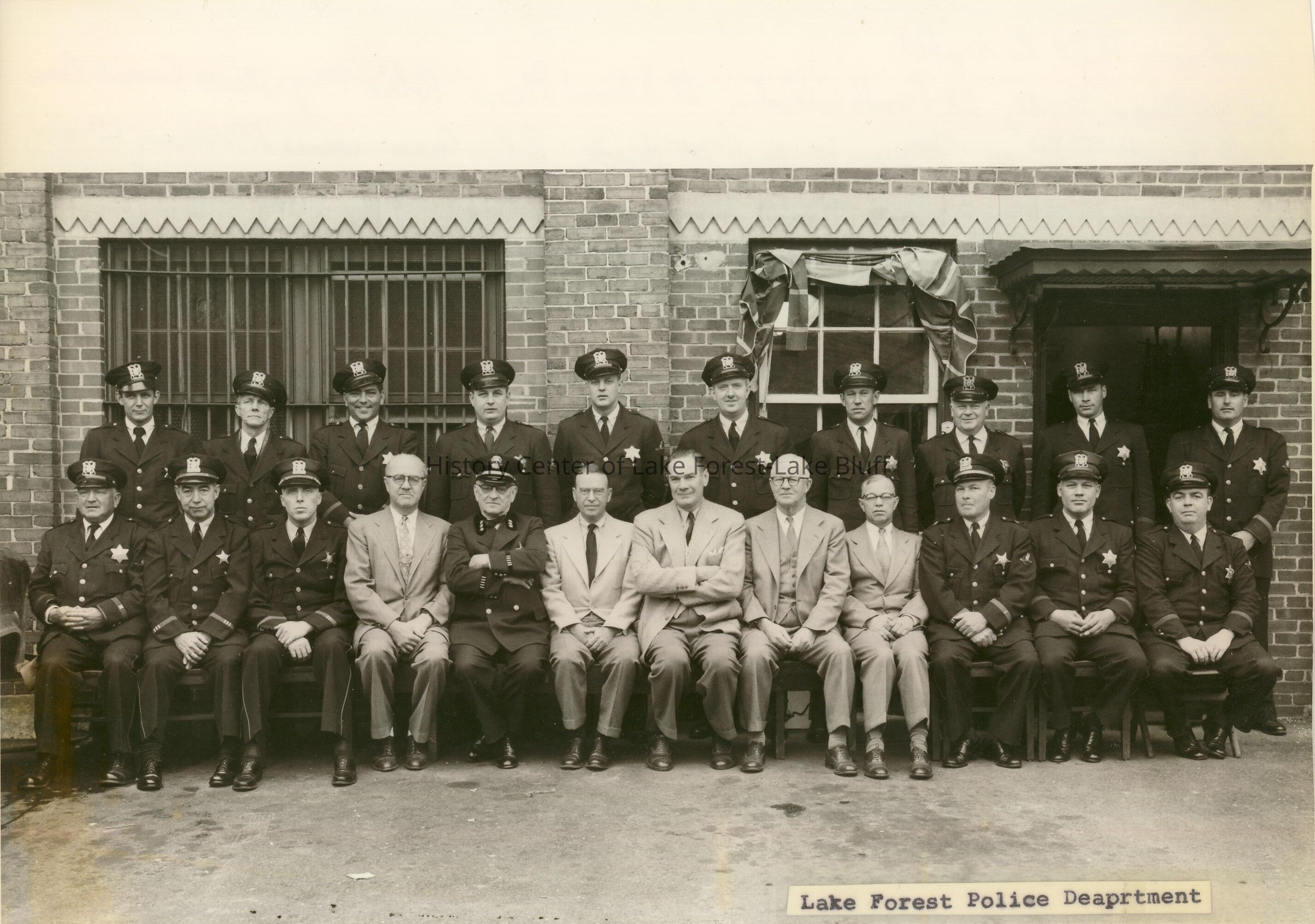 Police department photograph, taken 1953 in front of the police station on Forest Avenue.