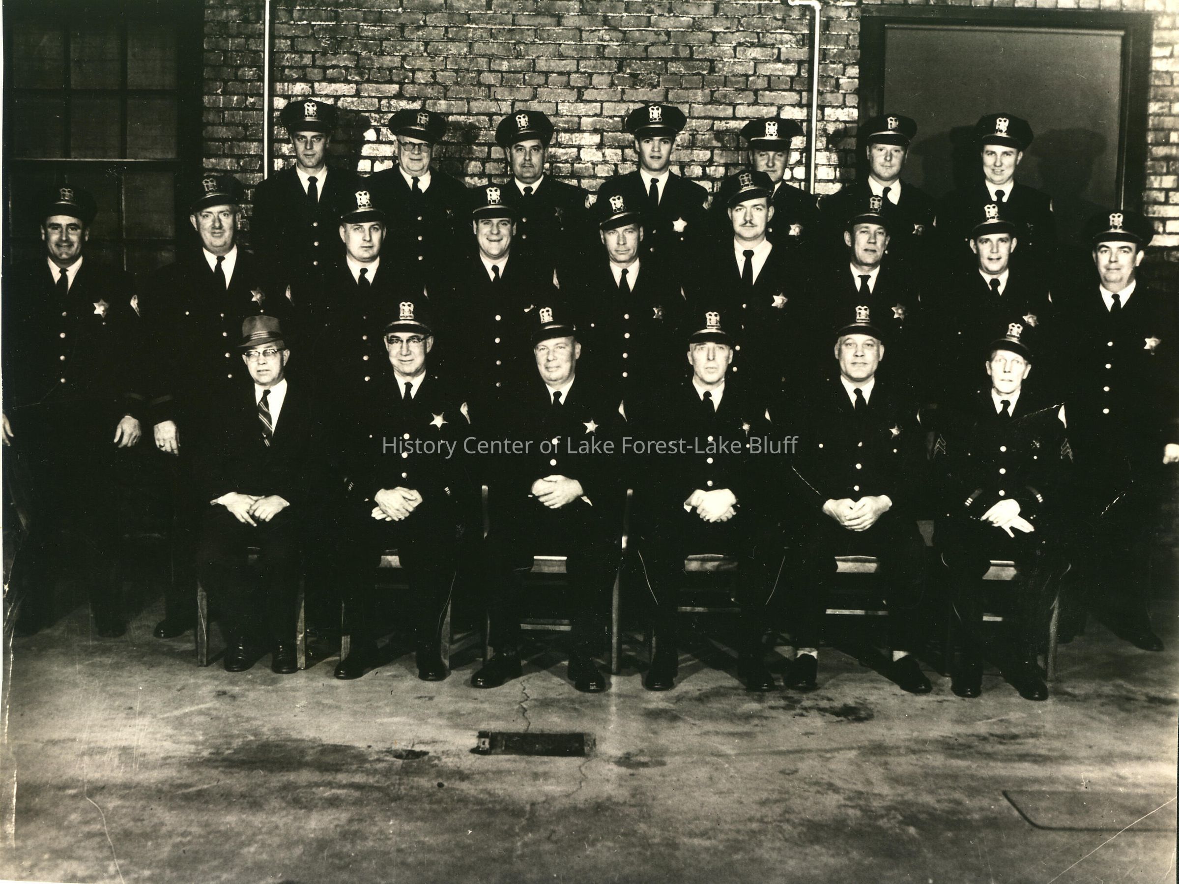 Front row, left to right: Roland Rolf, Frank Whalen, Chief Alex Brebner, Stewart Guess, Walter Johnson, Arthur Johnson.