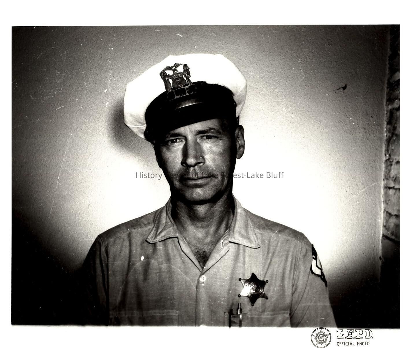 Police officer Bill O'Neill in uniform. Two copies of photo. Image is stamped "L.F.P.D. Official Photo"