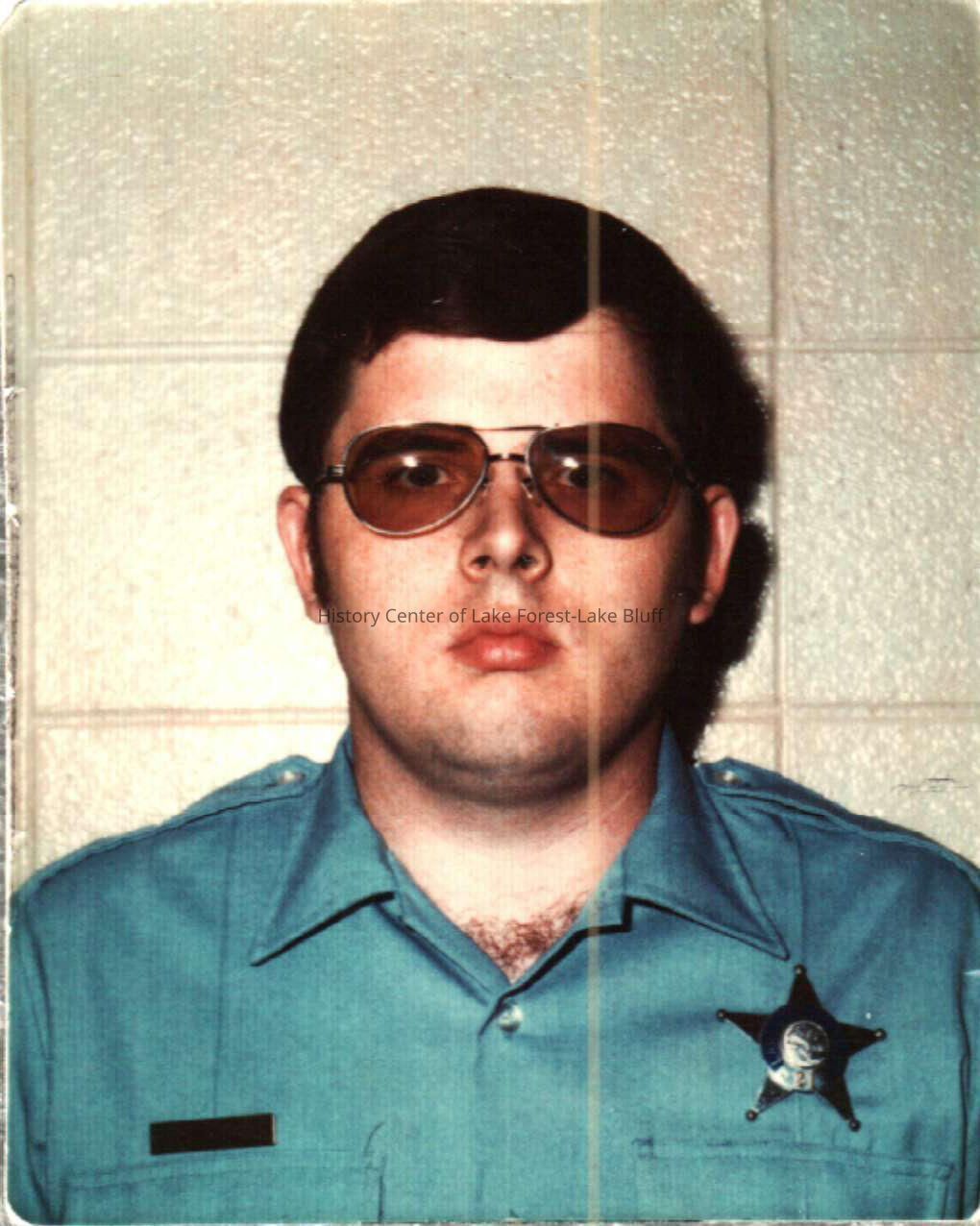 Small headshot photograph of a police office - Walter Hosking. Wearing tinted glasses or sunglasses. c. 1980s