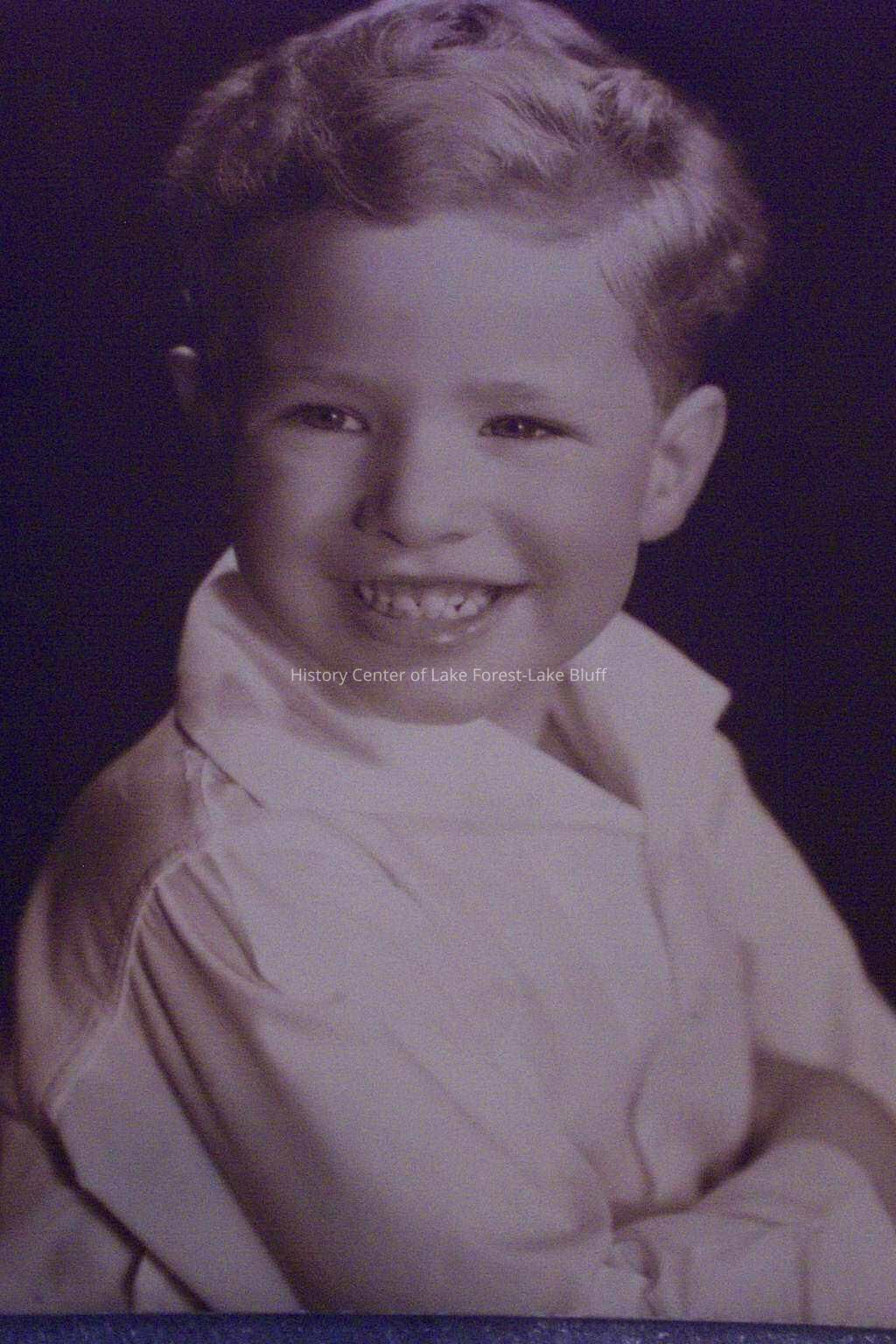 Portrait of boy (6?) arms crossed looking into camera. View is from waist up-in shirt, no coat.