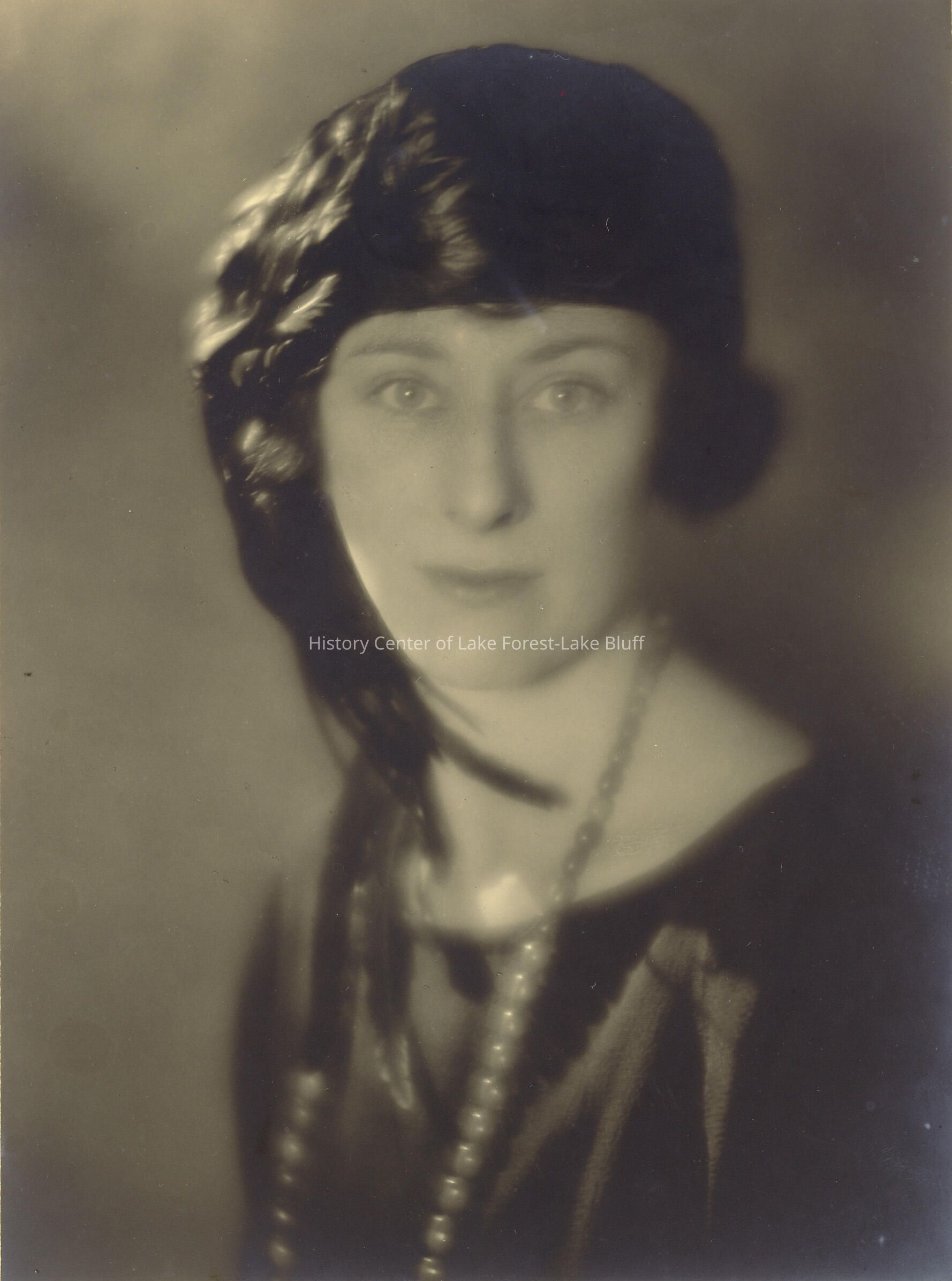 Raymor Studios- Young woman with feathered hat, long necklace and dark dress