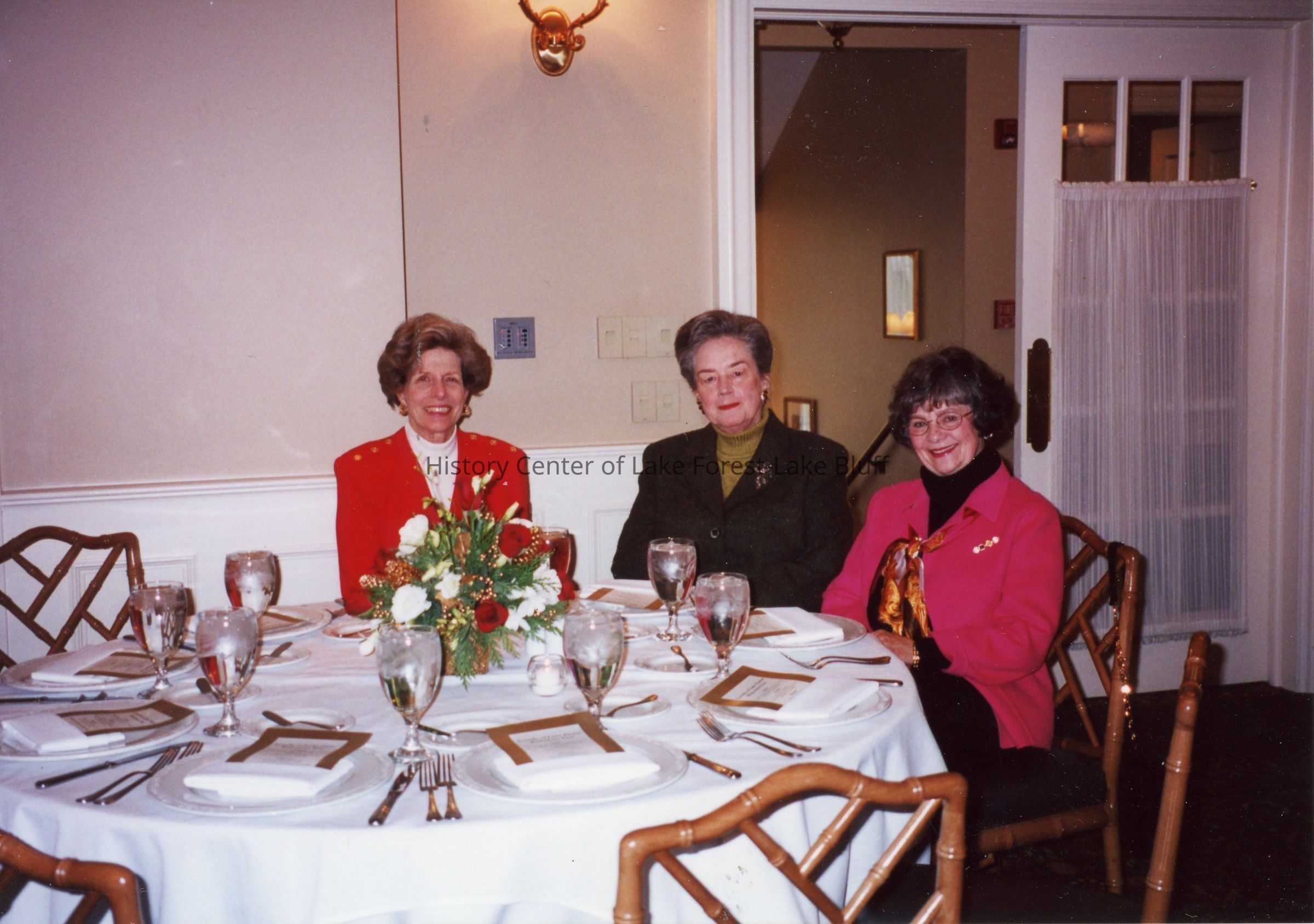 Three members of the Market Square Questers pose at a dinner.Photograph Details