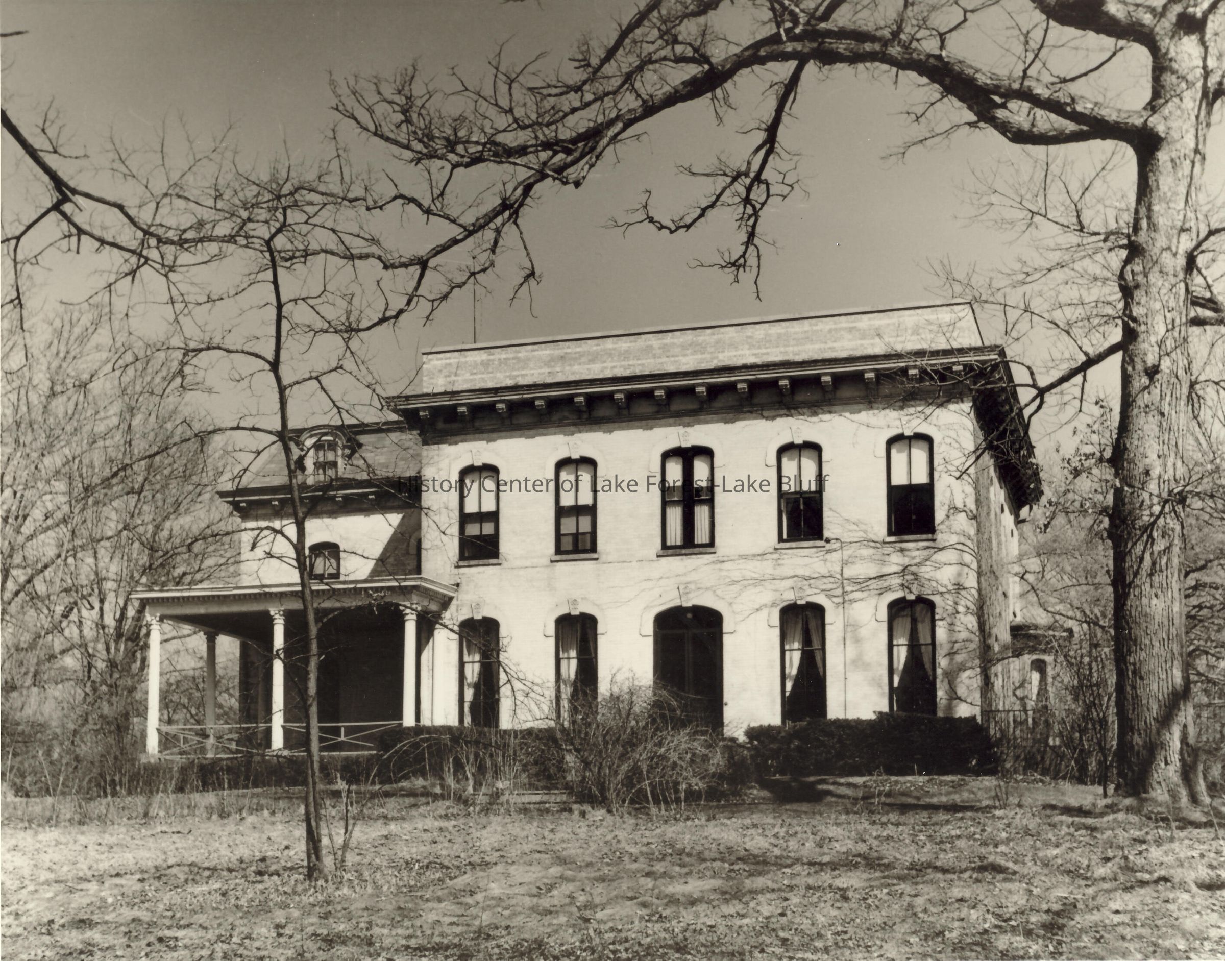 Quinlan home at 404 Deerpath. The Evergreens; Address: 404 East Deerpath; Owners: Charles H. Quinlan; Simeon B. Williams; Captain Israel Parsons Rumsey; John Baker; Bruce Southworth; Built: 1859, 1870 361 East Westminster coachhouse