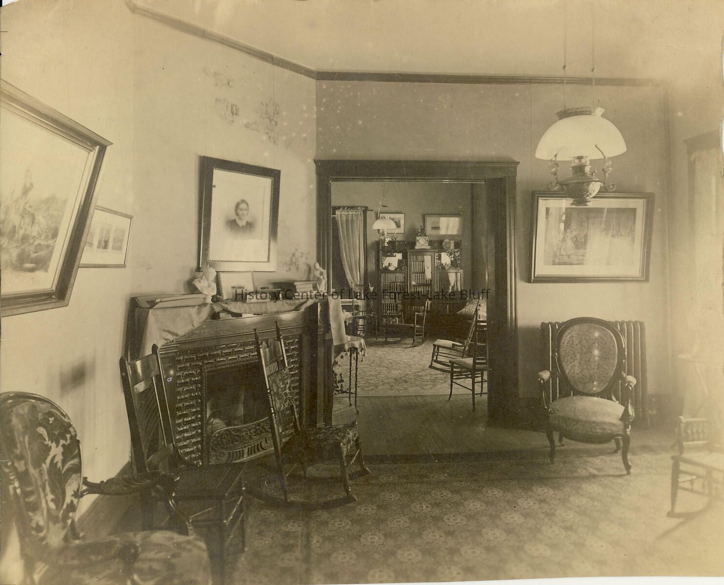 Sepia toned interior photograph of the Headmaster's rooms at Remsen Cottage, Lake Forest Academy. may have been on Poplar Avenue, Lake Forest