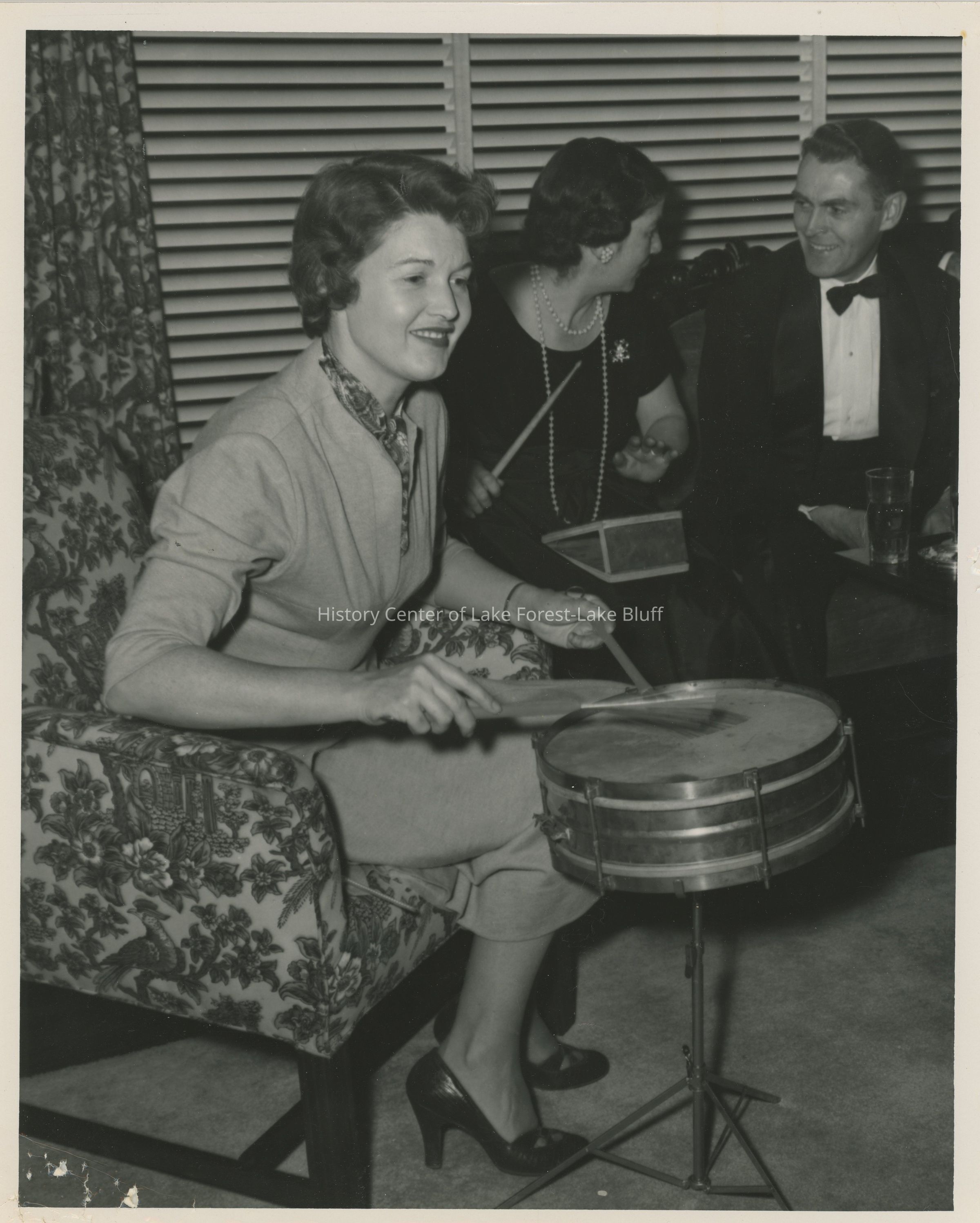 An image from a Requa Family Acting Troupe and Musical Group get together. It features Maryann White (left) and Mary Requa (right) playing various percussion instruments, while John Middleton sits on the right.