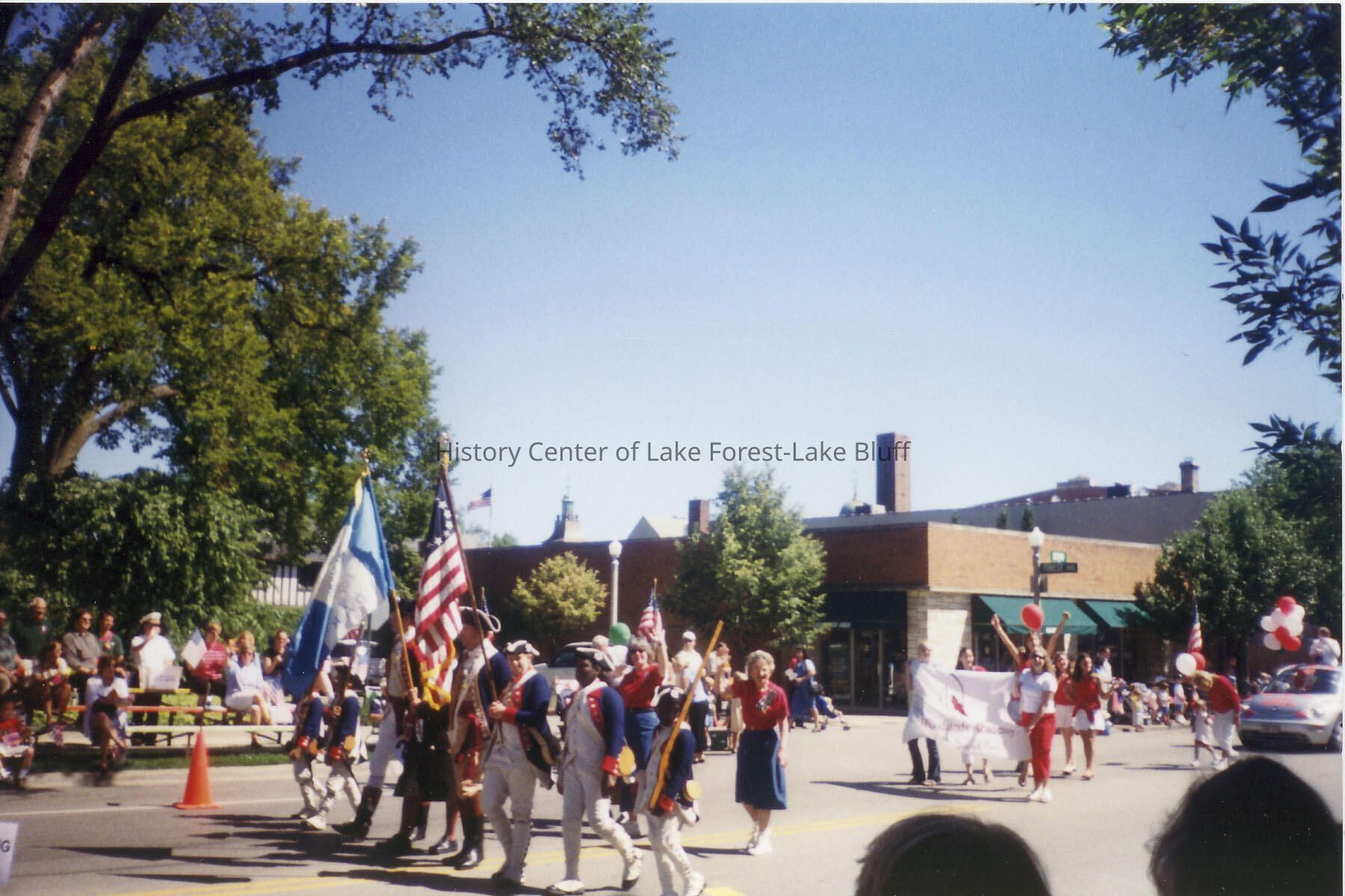 Revolutionary War-costumed marchers in Lake Forest Day Parade, 2002. duplicate copy is 2008.3.4