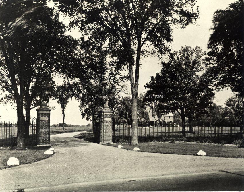Rookwoods - 1080 Ashlawn Drive Helen Culver architects: Pond & Pond, built 1900 entrance to the estate on Waukegan Road, looking west from Waukegan Road