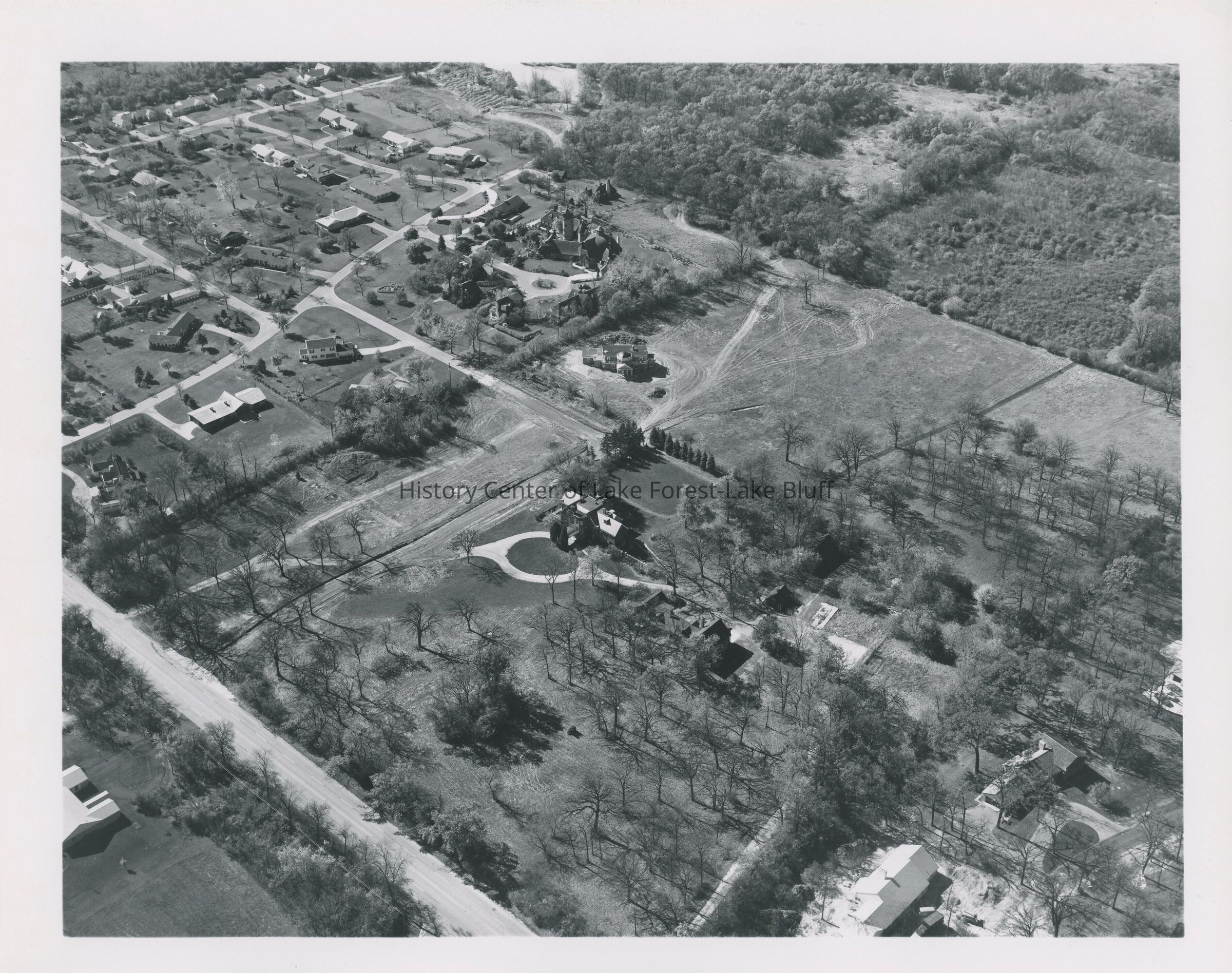 Aerial photo of Rookwoods, the Helen Culver Estate, taken in 1962 by the Chicago Aerial Survey.