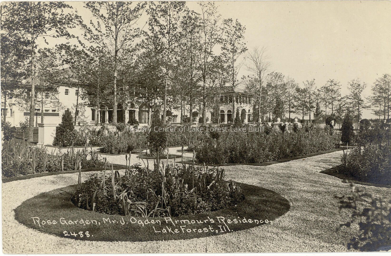 Postcard showing the rose garden at the J. Ogden Armour's residence in Lake Forest, Mellody Farms.