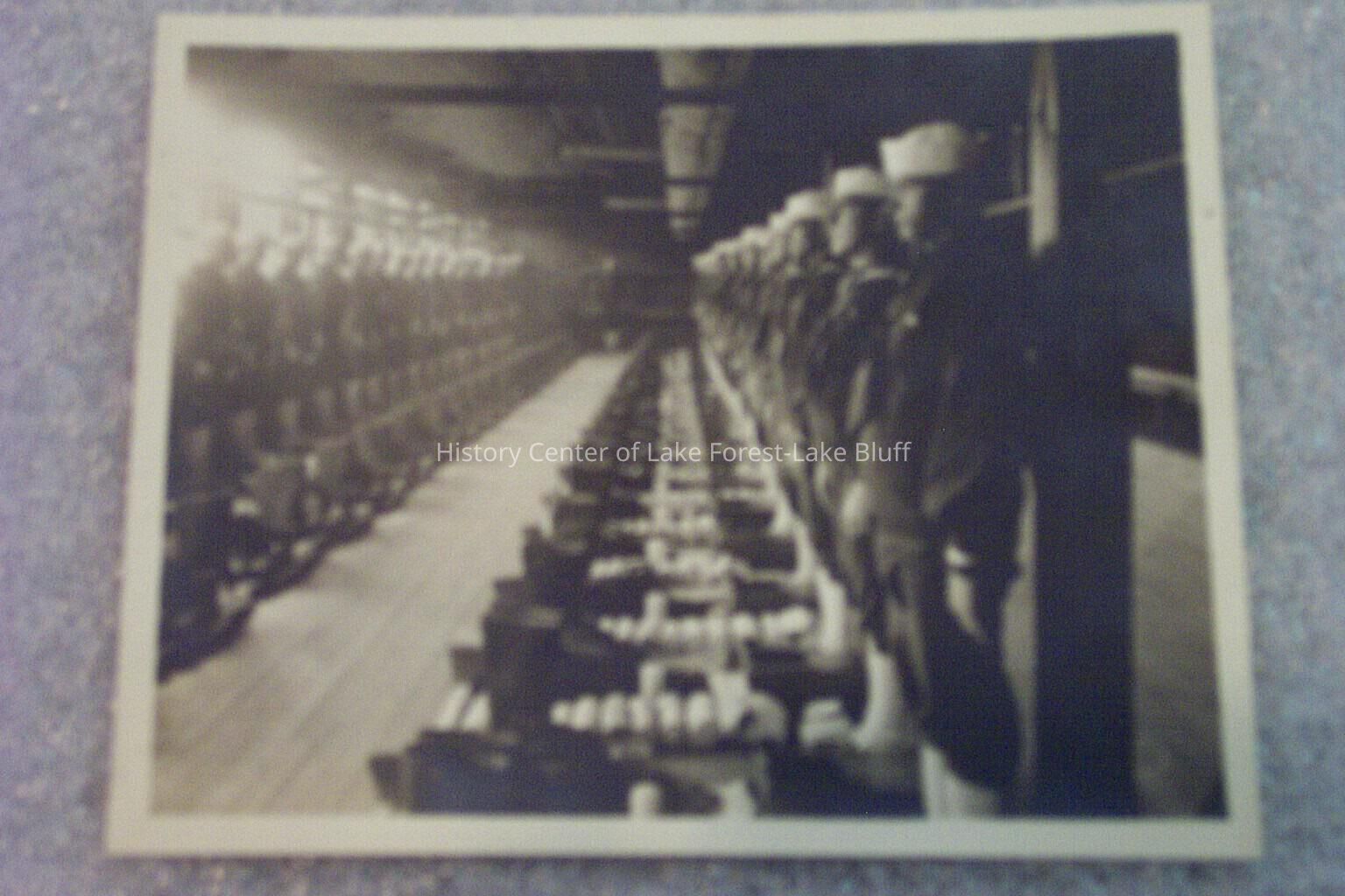 Interior image of men in blue uniforms standing for inspection