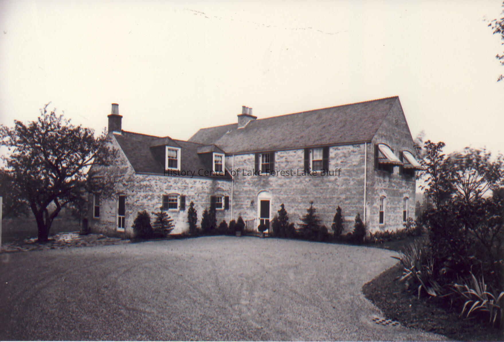 Exterior view from drive way of Walter Frazier home built for Samuel J. Walker Jr. in 1927. Located at 3 S. Green Bay Road in Lake Forest.