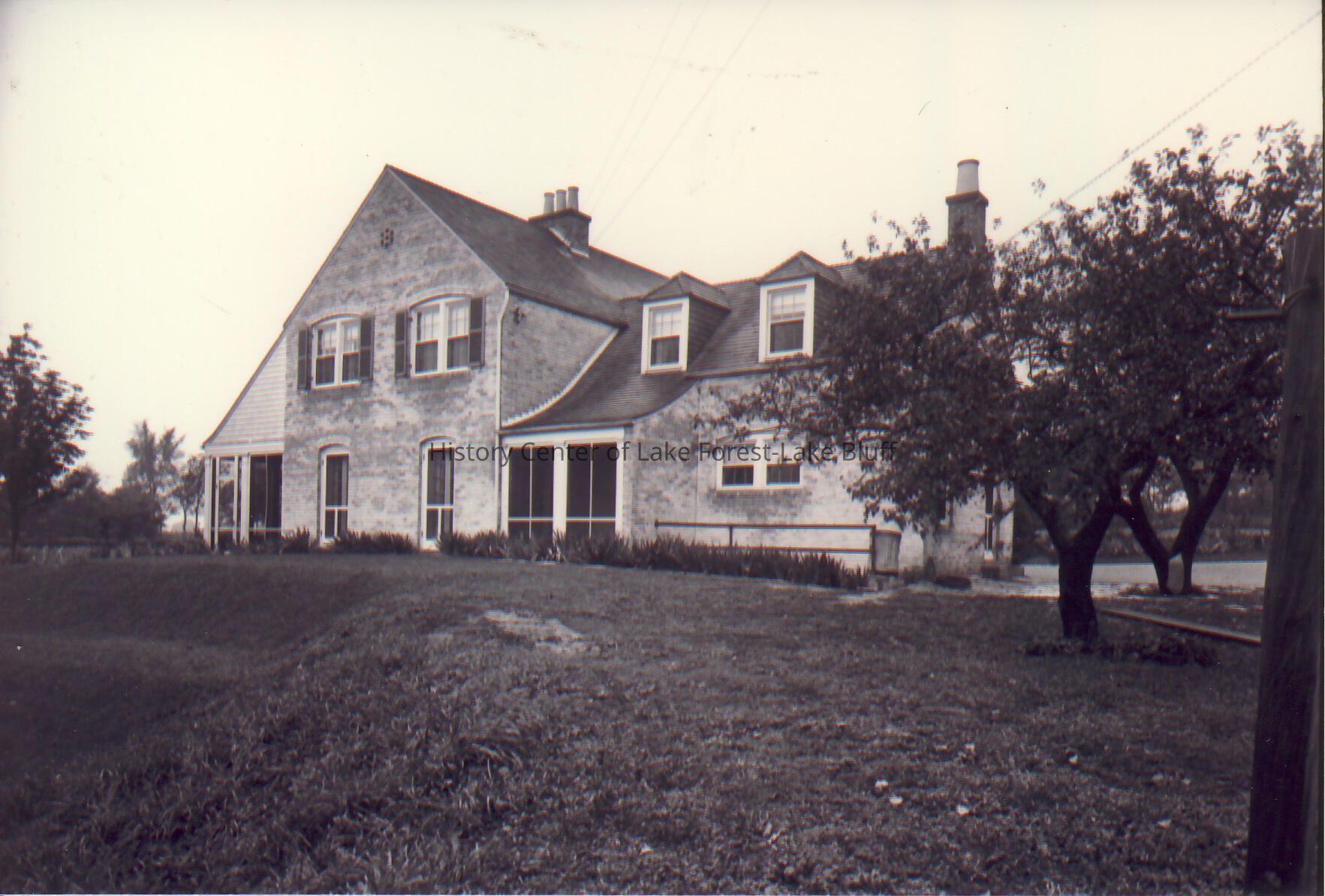 Exterior of Walter Frazier home built for Samuel J. Walker Jr. in 1927. Located at 3 S. Green Bay Road in Lake Forest, Illinois. (Black and White Image)